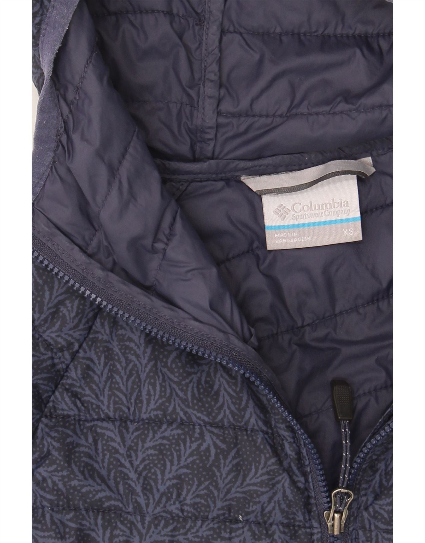 Jaqueta feminina acolchoada com capuz COLUMBIA UK 6 XS azul marinho floral nylon