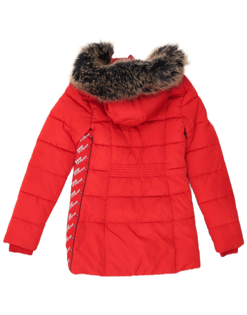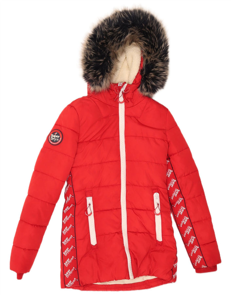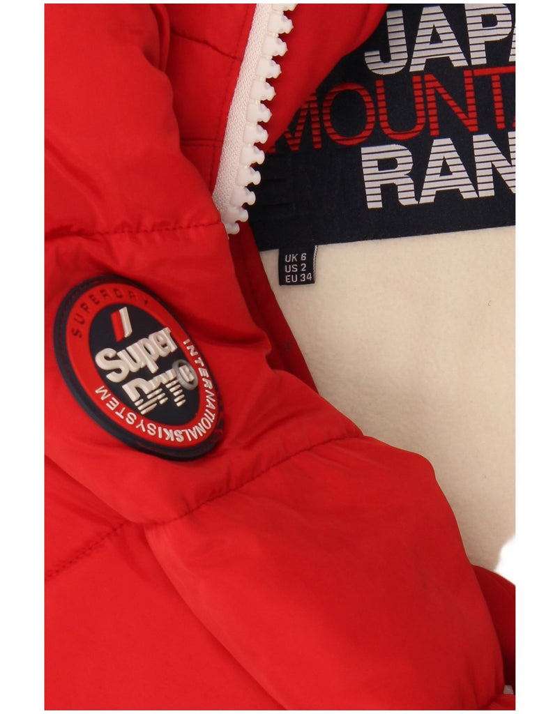 Jaqueta feminina acolchoada com capuz gráfico SUPERDRY UK 6 XS poliéster vermelho
