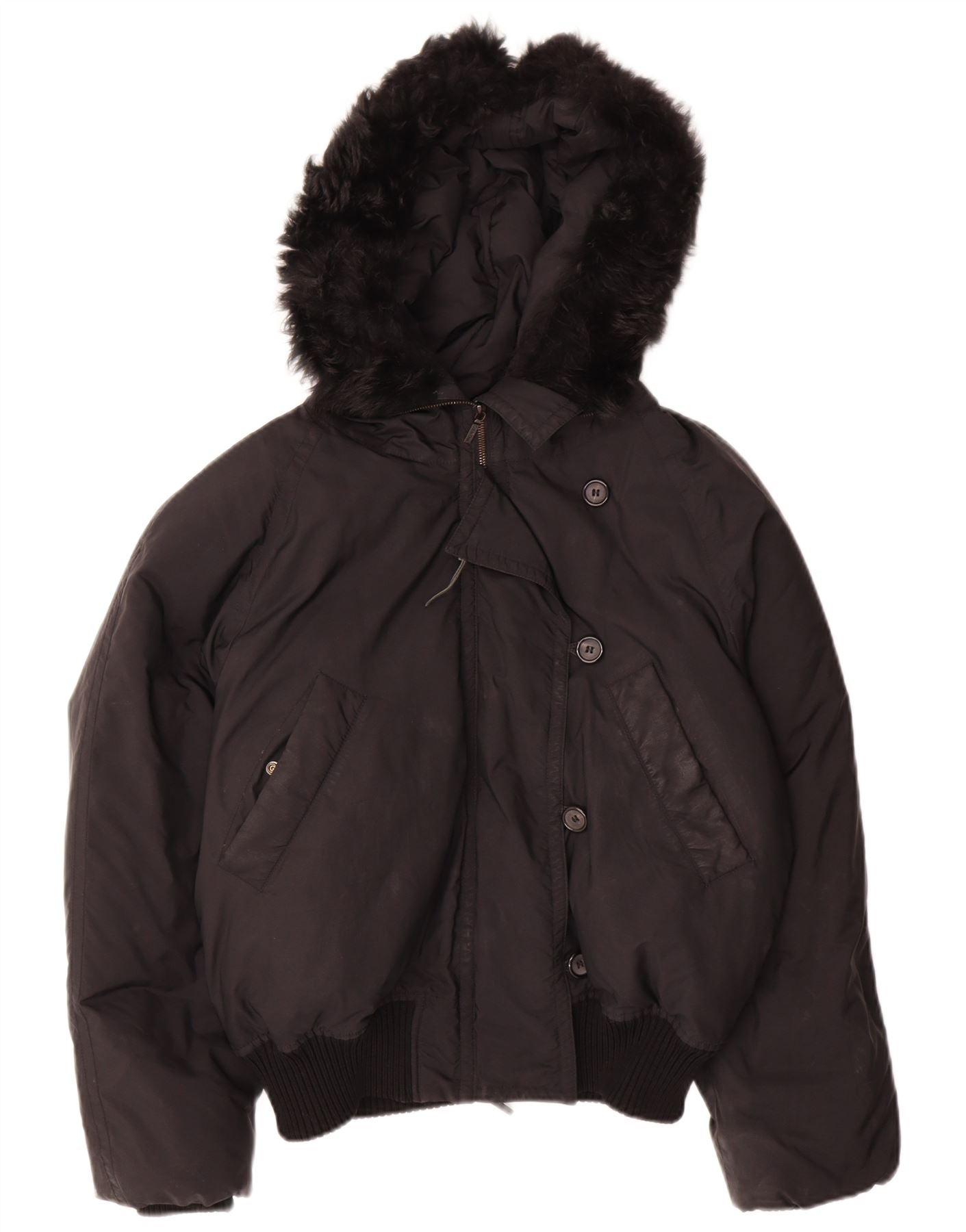 Jaqueta feminina acolchoada com capuz grande CALVIN KLEIN US 4 pequena preta