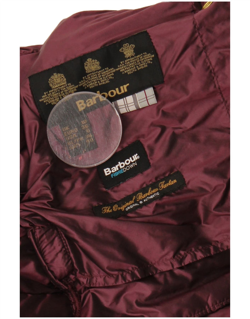 Jaqueta feminina acolchoada de corte solto BARBOUR Reino Unido 10 pequena poliamida roxa