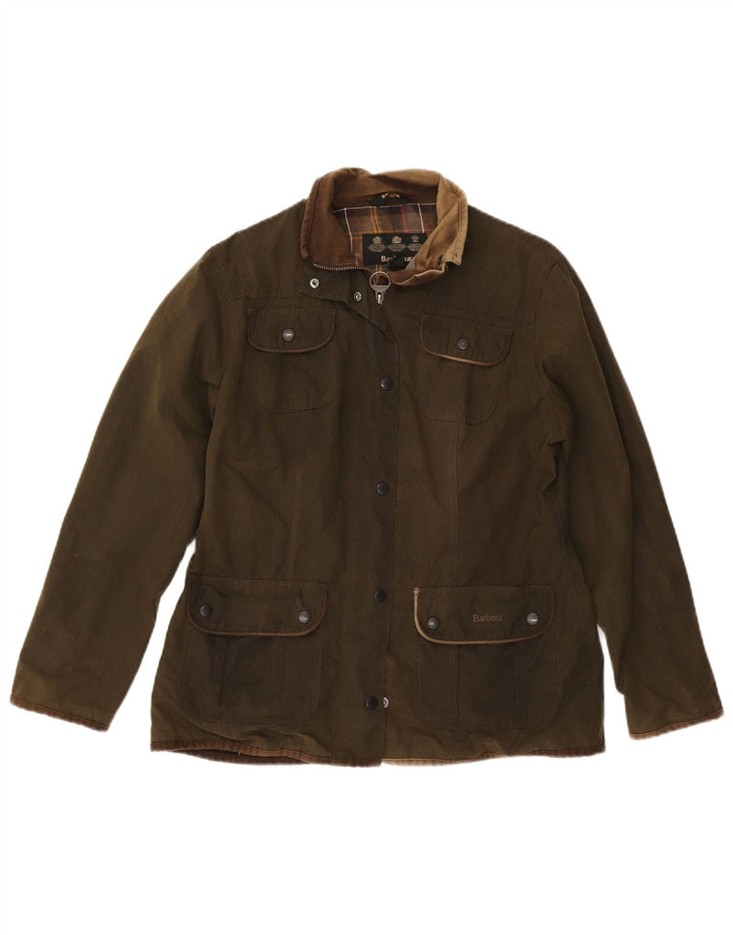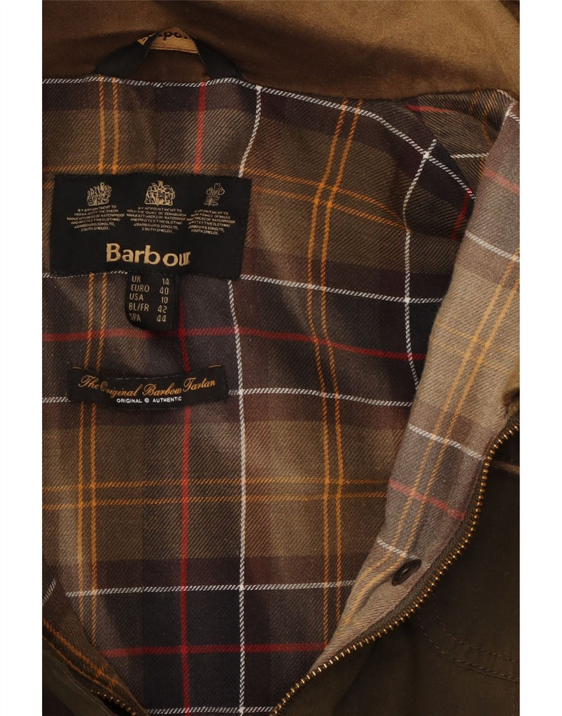 Jaqueta feminina de algodão encerado BARBOUR Reino Unido 14 grande algodão cáqui