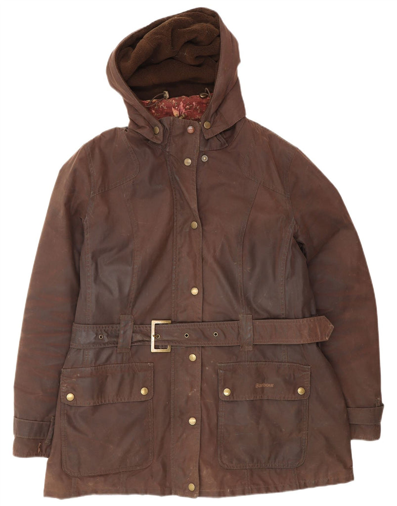 Jaqueta feminina de algodão encerado com capuz BARBOUR Reino Unido 16 grande marrom