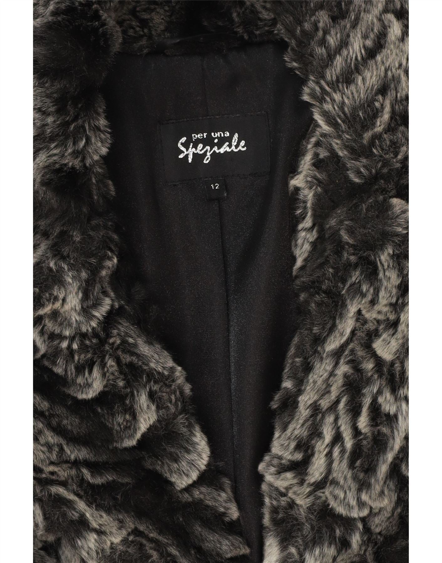 Jaqueta feminina de pele sintética PER UNA UK 12 acrílico listrado cinza médio