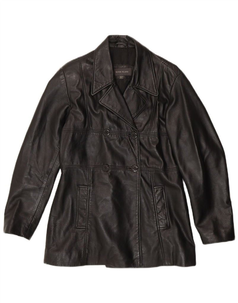 Jaqueta feminina RIVER ISLAND com peito duplo Reino Unido 14 couro preto médio