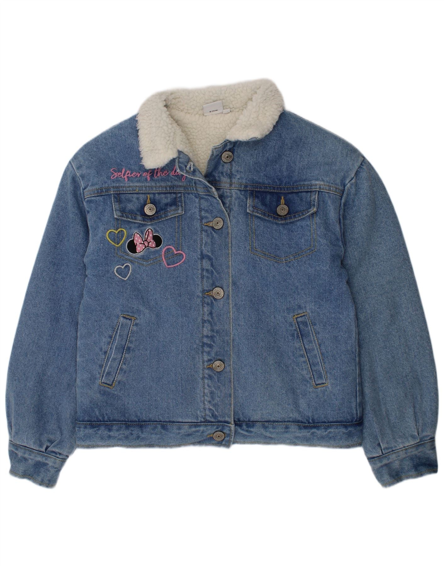 Jaqueta jeans DISNEY Girls Minnie Graphic Sherpa 9-10 anos algodão azul