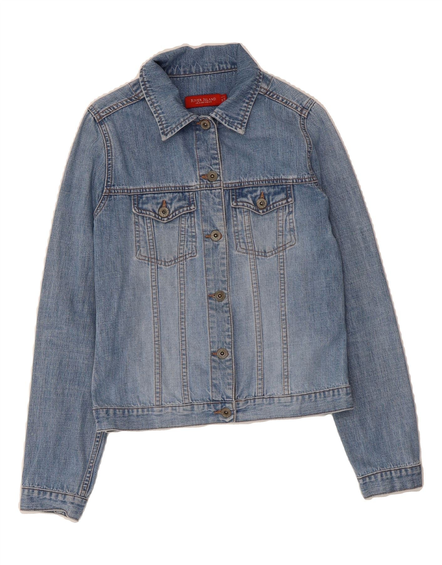 Jaqueta jeans feminina RIVER ISLAND Reino Unido 10 algodão azul pequeno