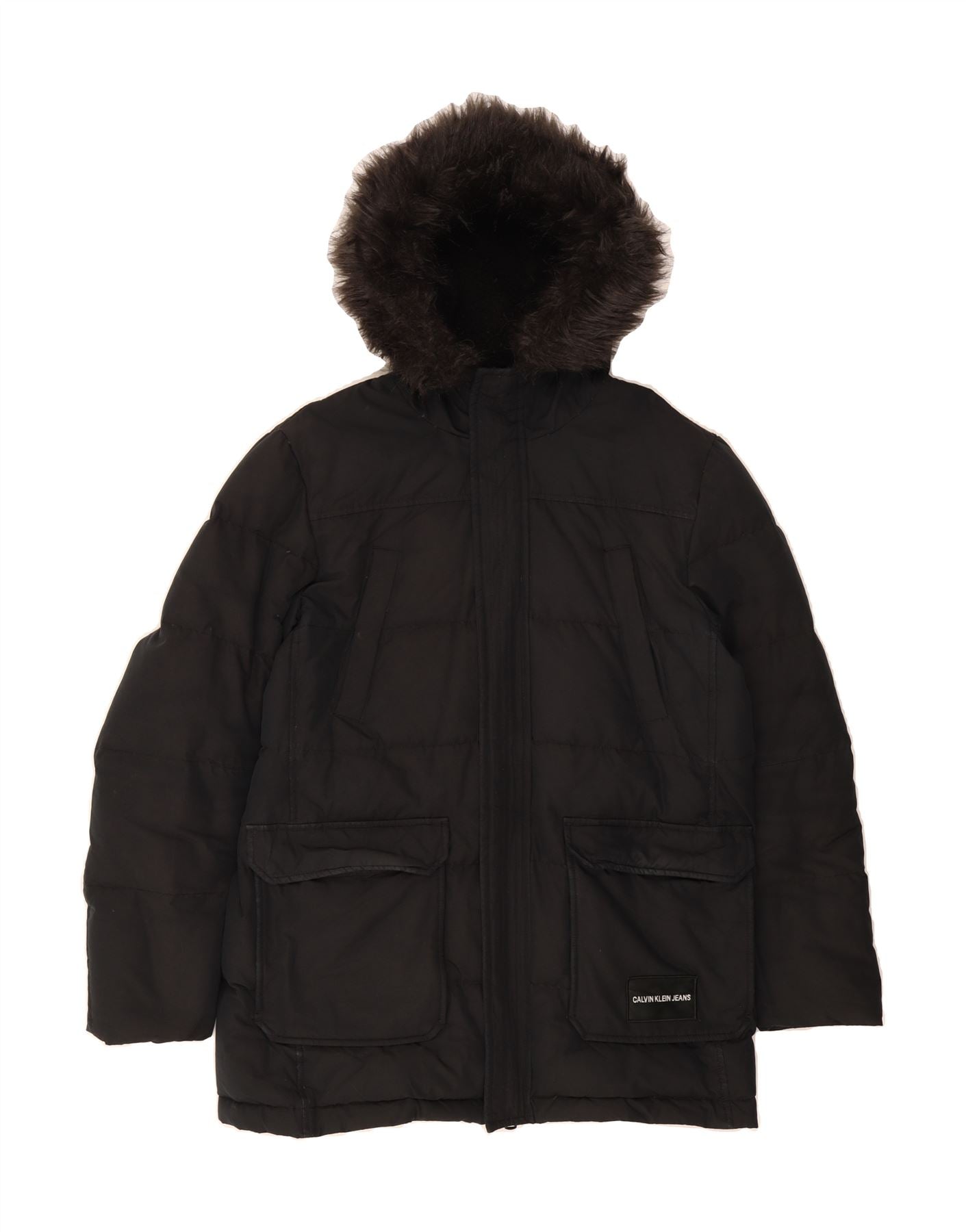 Jaqueta masculina acolchoada com capuz CALVIN KLEIN Reino Unido 40 grande algodão preto