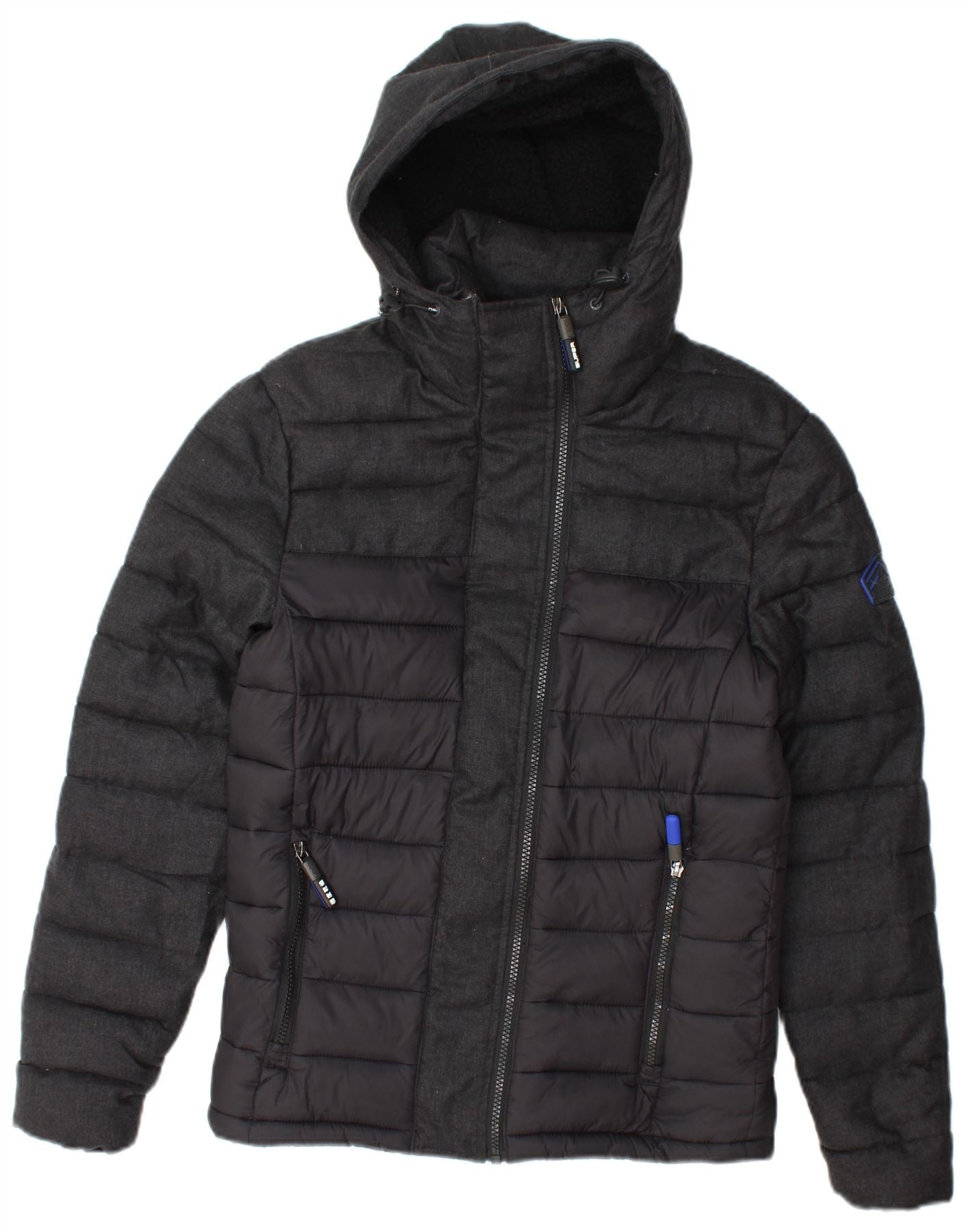 Jaqueta masculina acolchoada com capuz SUPERDRY UK 34 XS cinza Colourblock poliéster