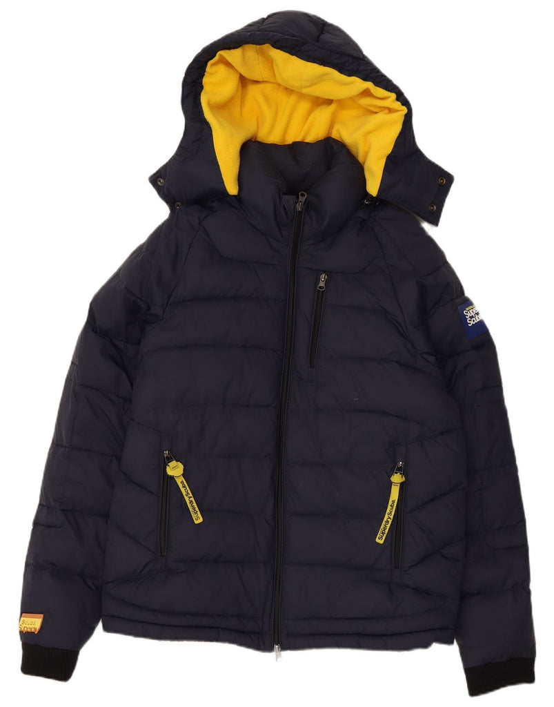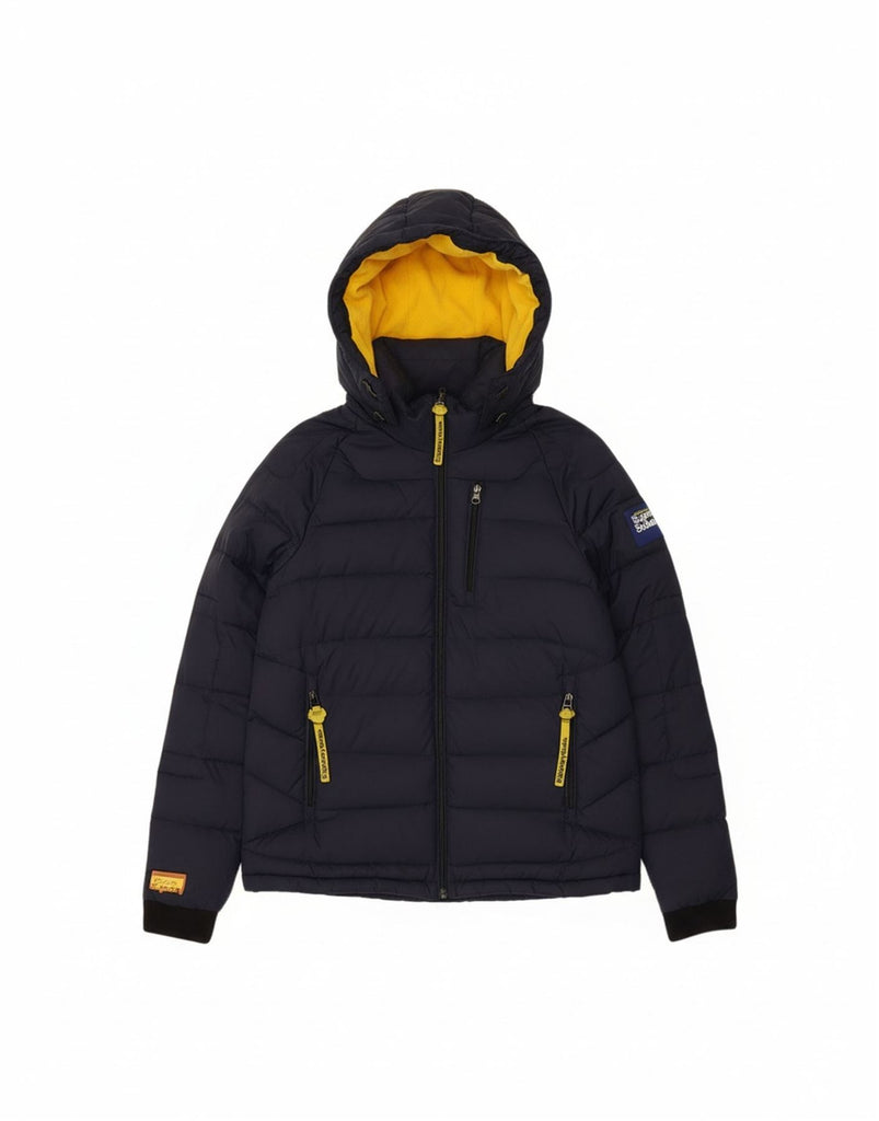 Jaqueta masculina acolchoada com capuz SUPERDRY UK 40 grande nylon azul marinho