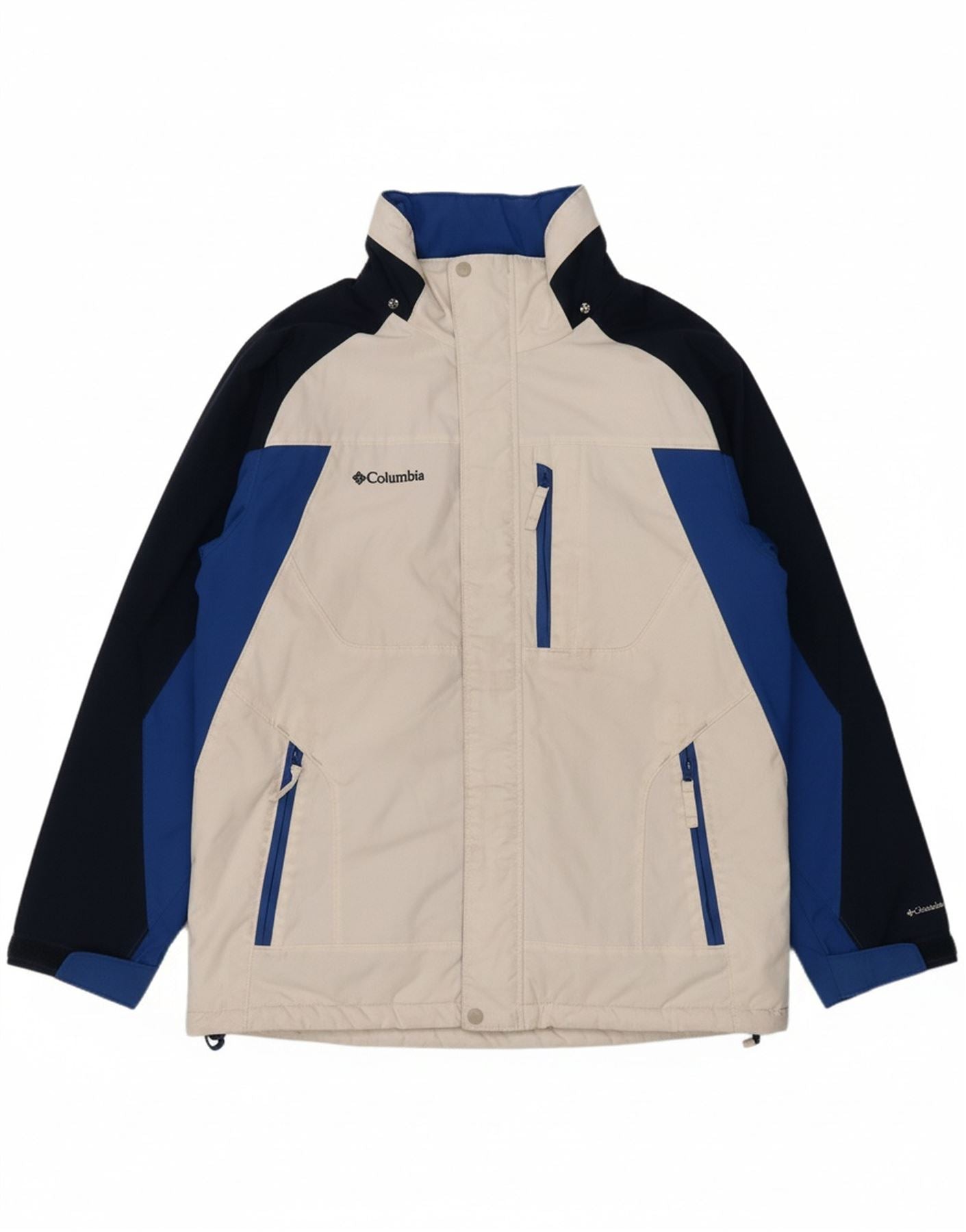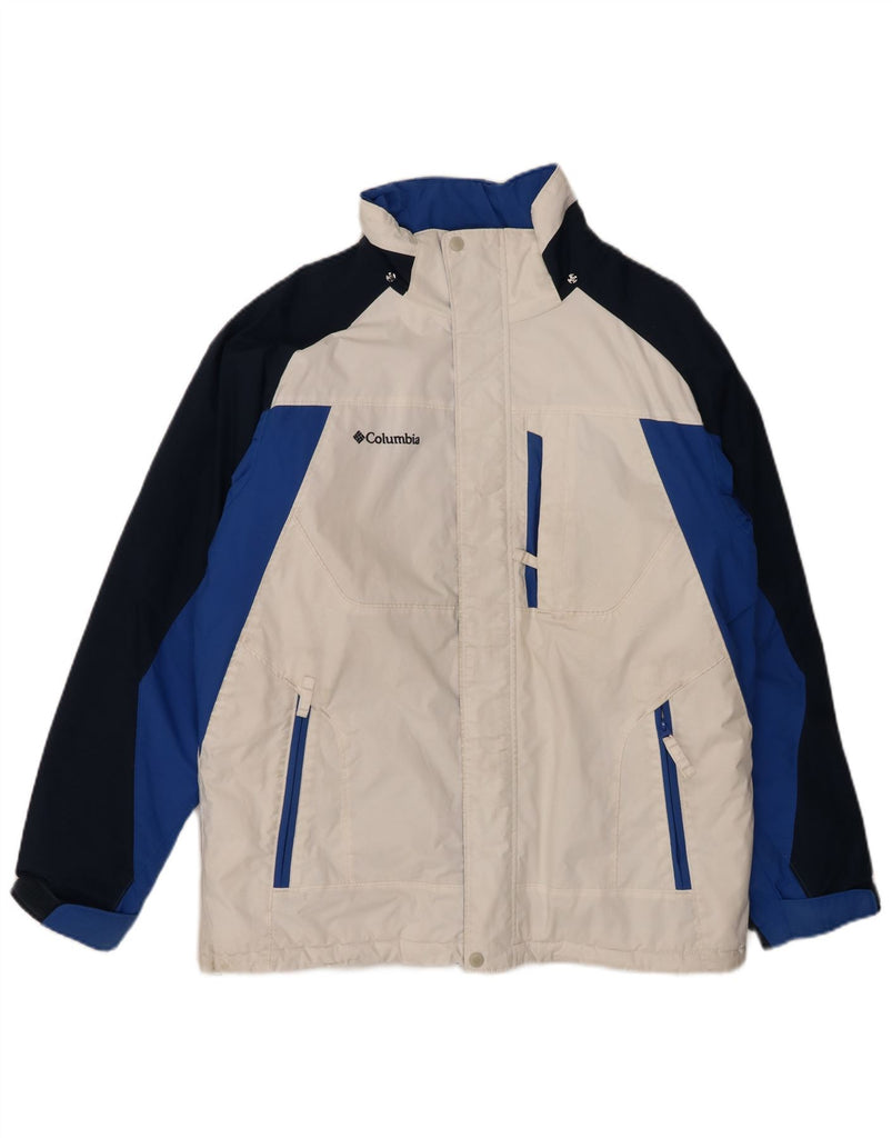 Jaqueta masculina COLUMBIA solta acolchoada Reino Unido 38 médio branco colorblock nylon