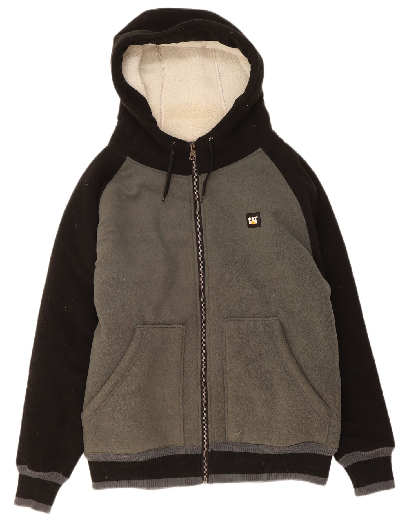 - Descrição da IA: Este suéter com capuz com zíper masculino CAT é feito de lã macia, com um forro sherpa luxuoso para aquecer. Apresenta um ajuste regular com fecho de correr completo para um estilo adaptável. O prático decote com capuz e as mangas compridas garantem conforto. Os bolsos oferecem conveniência, enquanto um design multicolorido proeminente em preto, cinza e branco cria interesse visual. Um logotipo exclusivo fornece um toque ousado da marca.