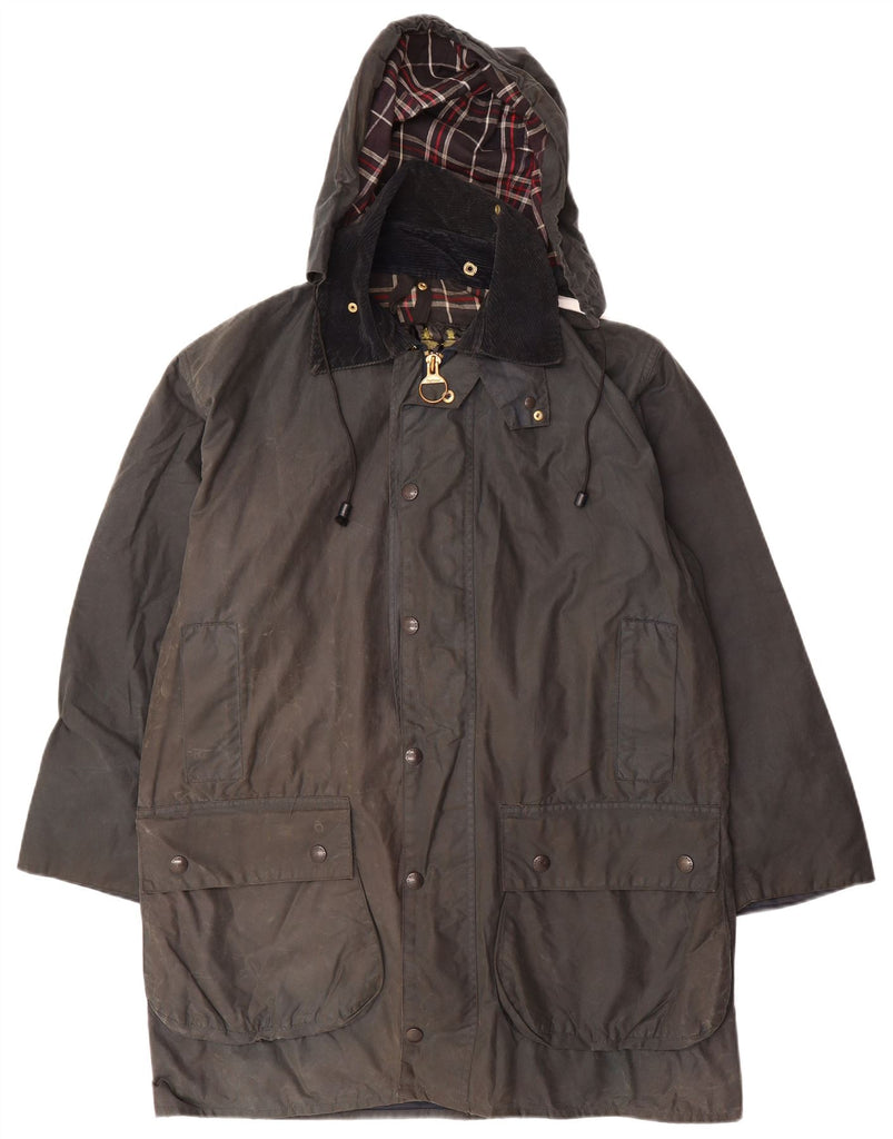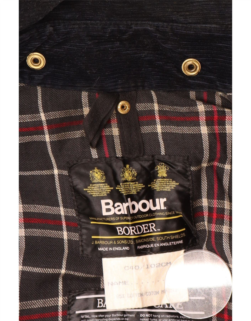Jaqueta masculina encerada com capuz e borda BARBOUR Reino Unido 40 algodão azul marinho médio