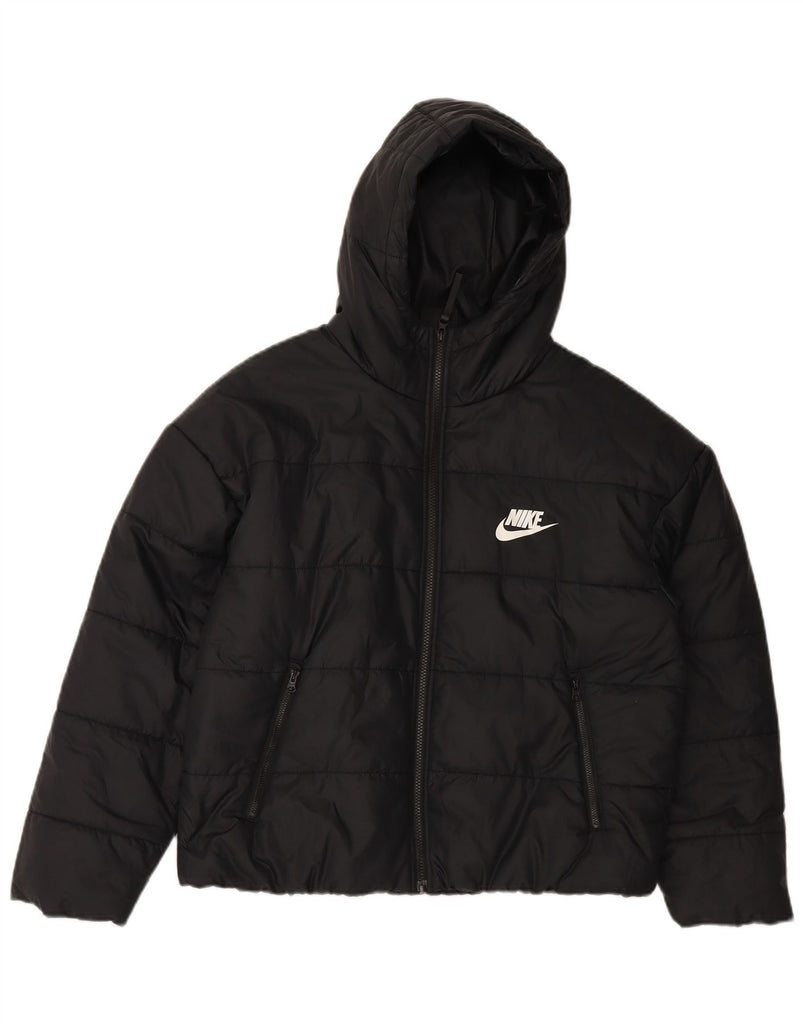 Jaqueta masculina NIKE com capuz gráfico acolchoado UK 38 poliéster preto médio