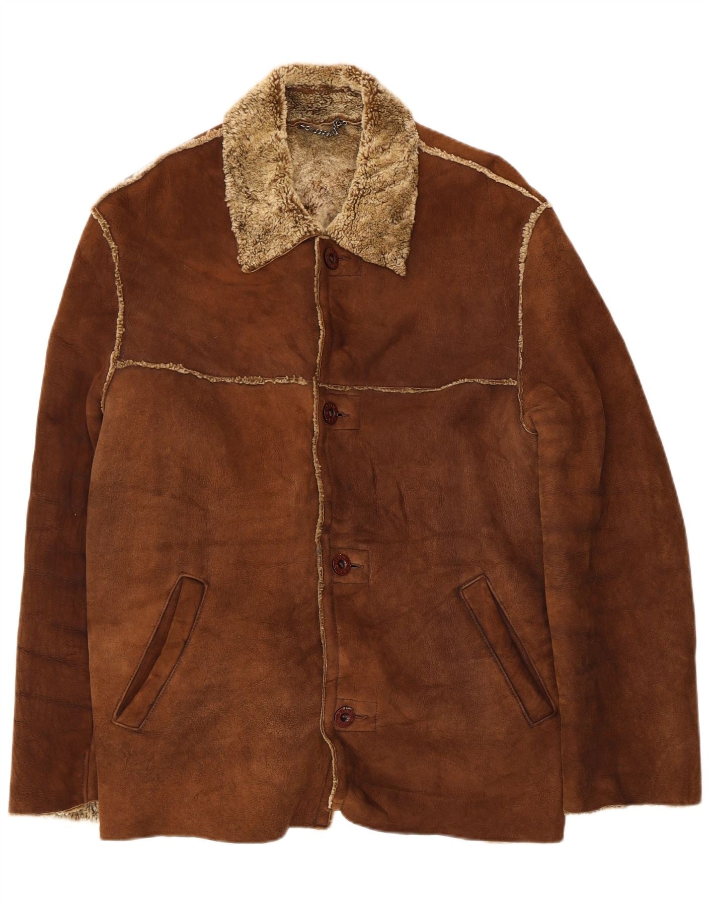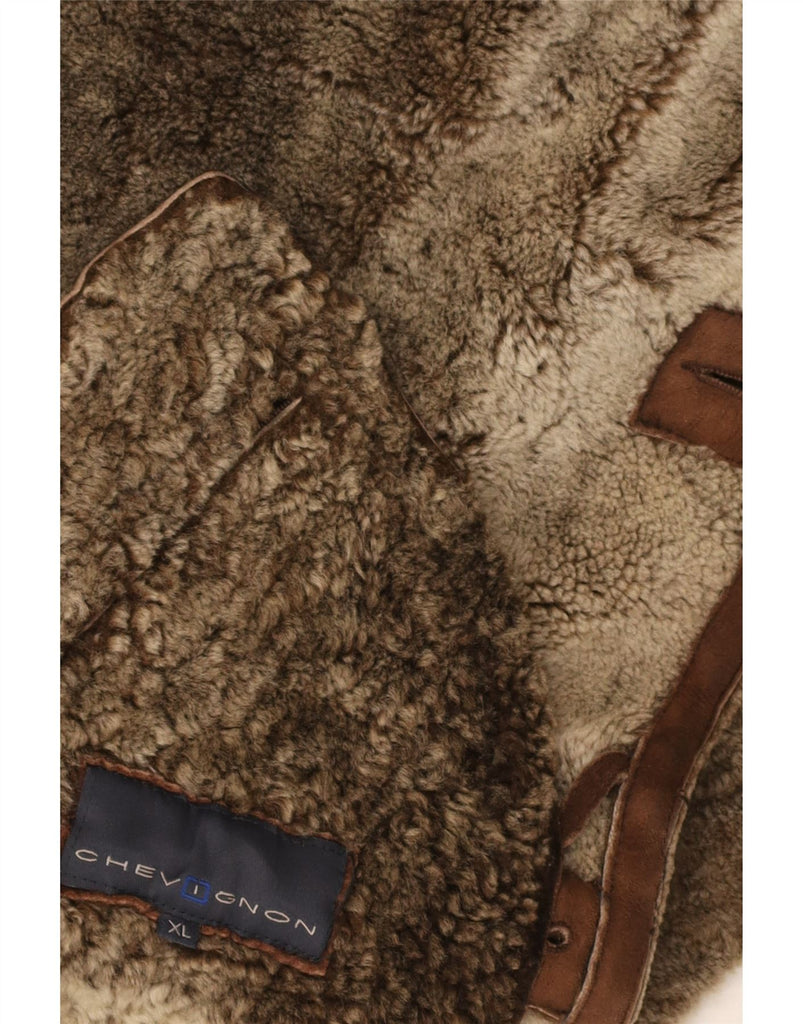 Jaqueta masculina Shearling CHEVIGNON Reino Unido 42 XL couro marrom