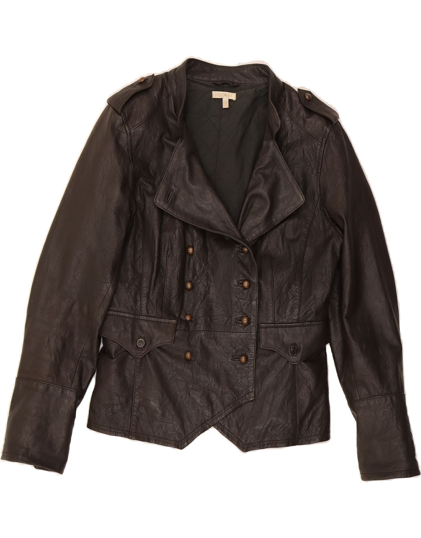 Jaqueta militar feminina KOOKAI com peito duplo tamanho 3 XS couro marrom