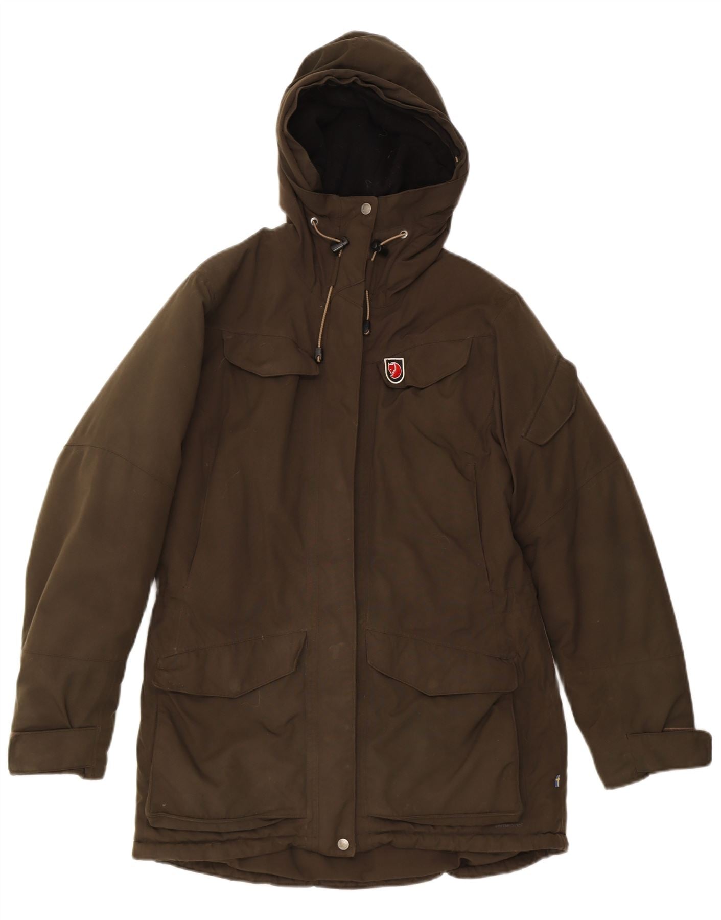 Jaqueta parka feminina com capuz FJALL RAVEN Reino Unido 10 pequena poliamida cáqui