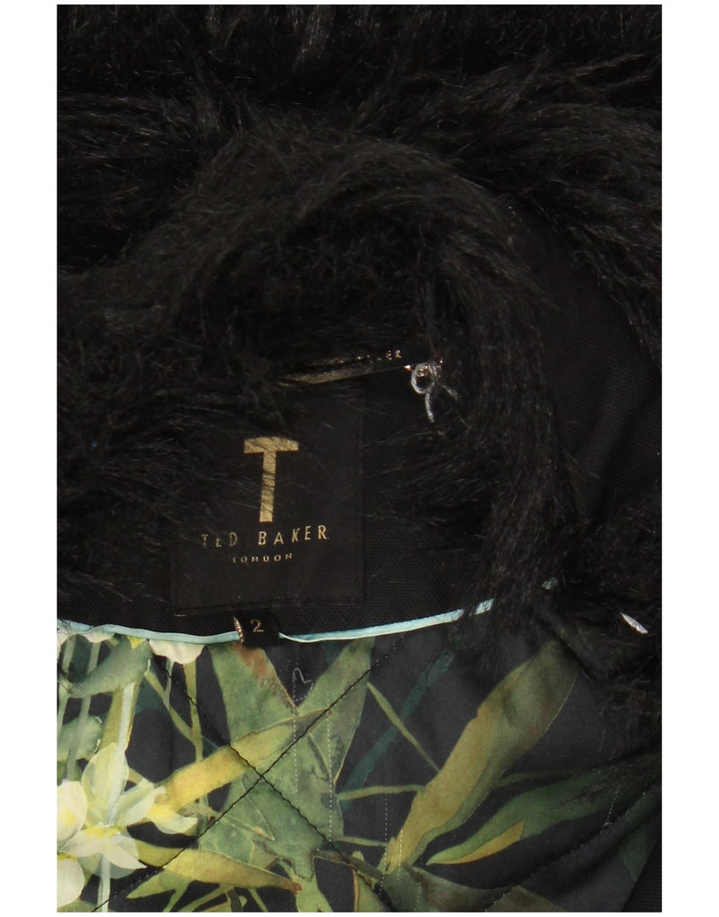 Jaqueta parka feminina com capuz TED BAKER tamanho 2 poliéster preto pequeno