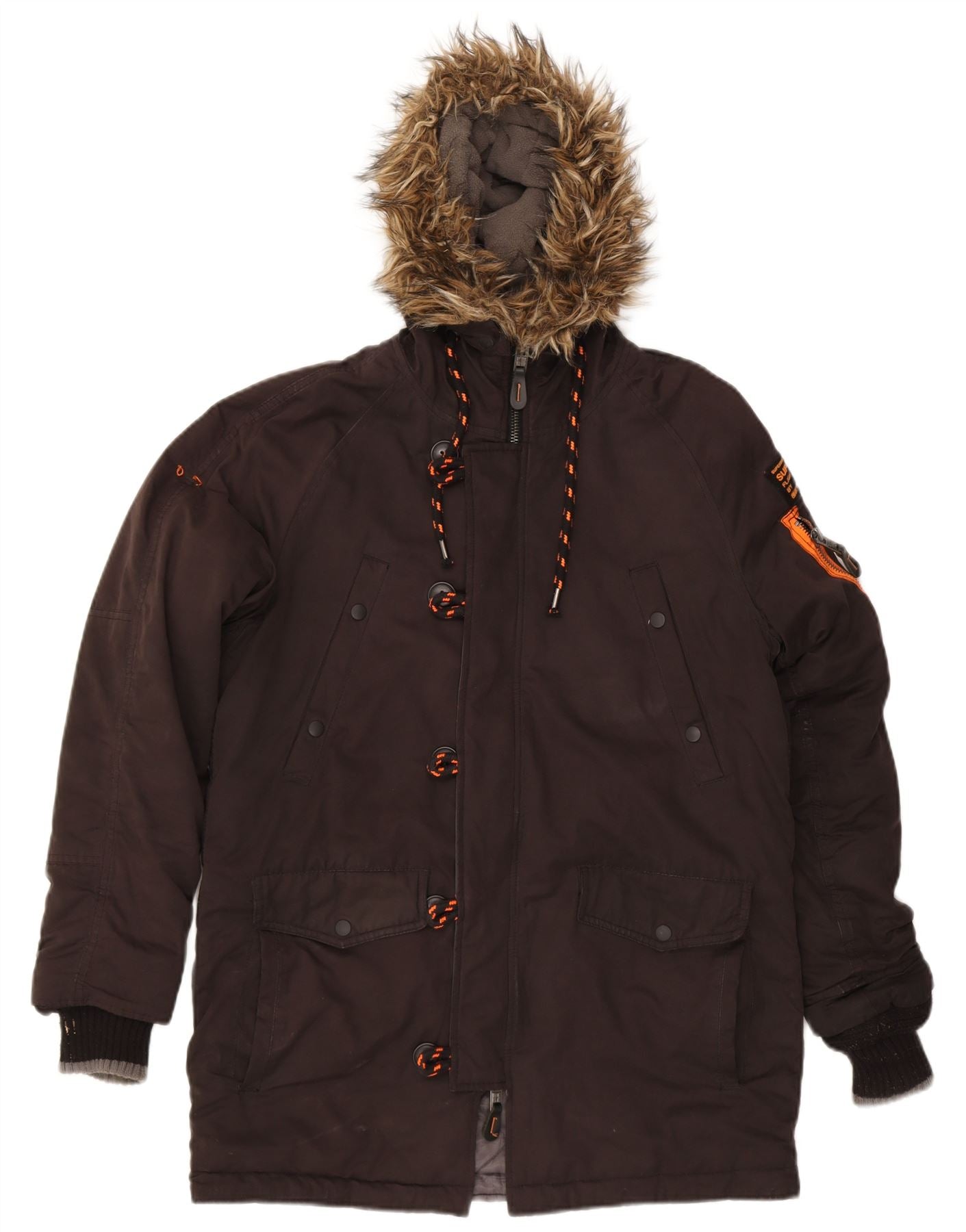 Jaqueta Parka masculina SUPERDRY com capuz Reino Unido 40 grande poliéster preto