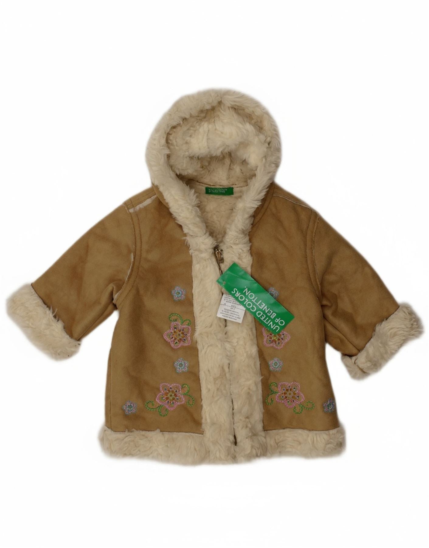 Jaqueta Sherpa com capuz para meninas BENETTON 3-6 meses bege floral acrílico