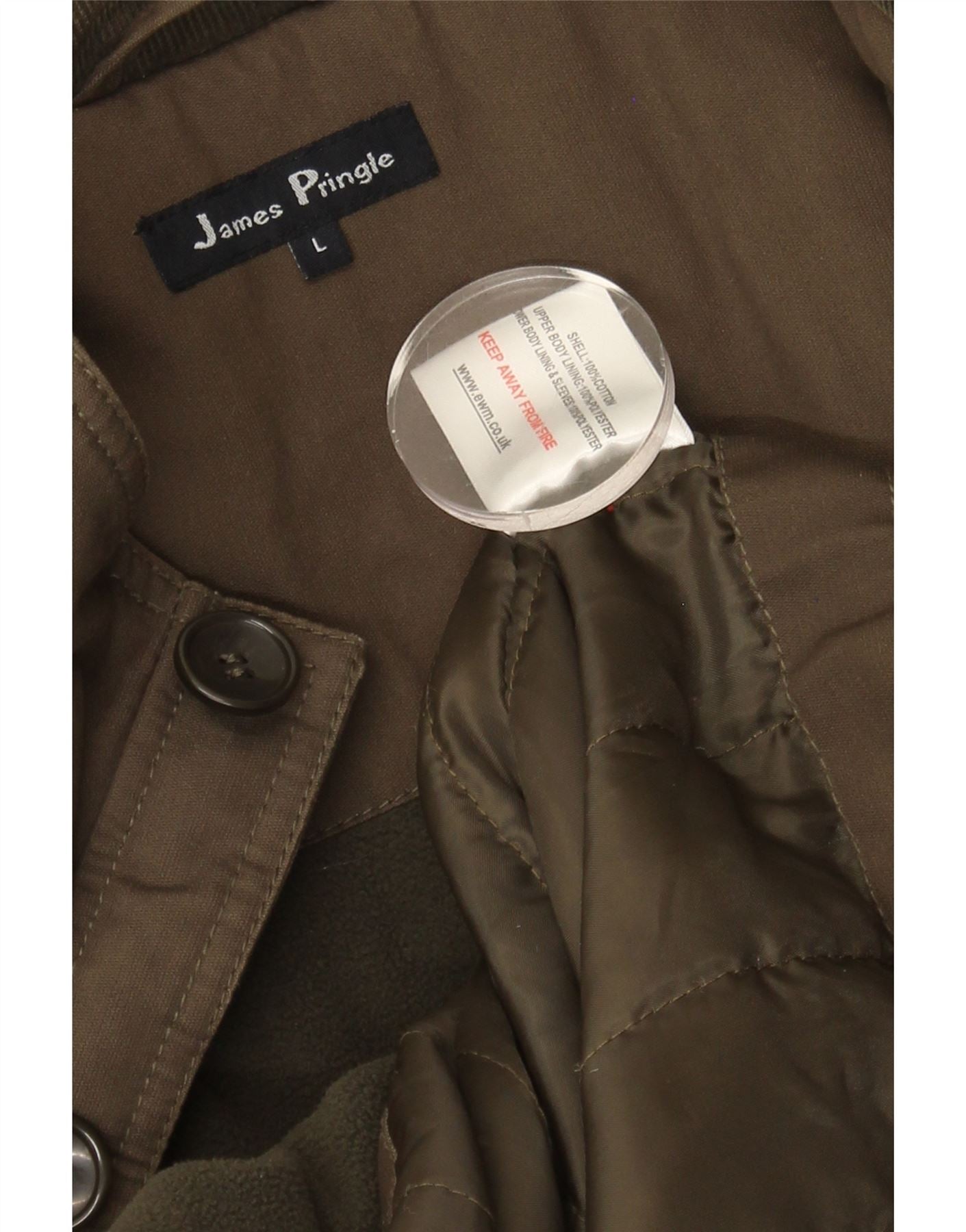 Jaqueta utilitária masculina acolchoada JAMES PRINGLE Reino Unido 40 algodão cáqui grande