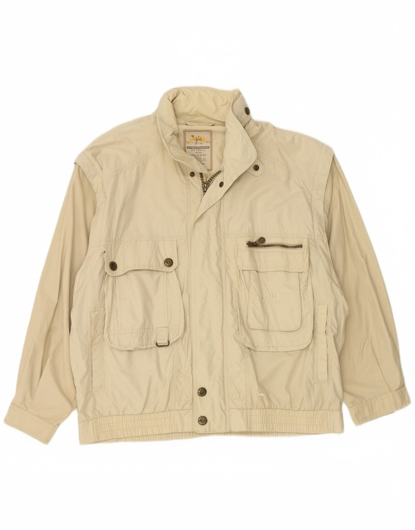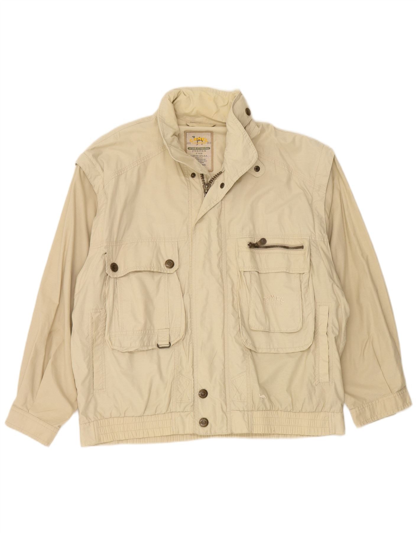 - Descrição da IA: Esta jaqueta utilitária masculina Camel é confeccionada em tecido leve, apresentado em um versátil tom bege. Possui decote clássico com gola e mangas compridas. Um fecho de correr completo percorre a frente. Vários bolsos práticos melhoram seu design utilitário. O ajuste regular garante um uso confortável, com detalhes sutis nos botões adicionando um toque refinado.