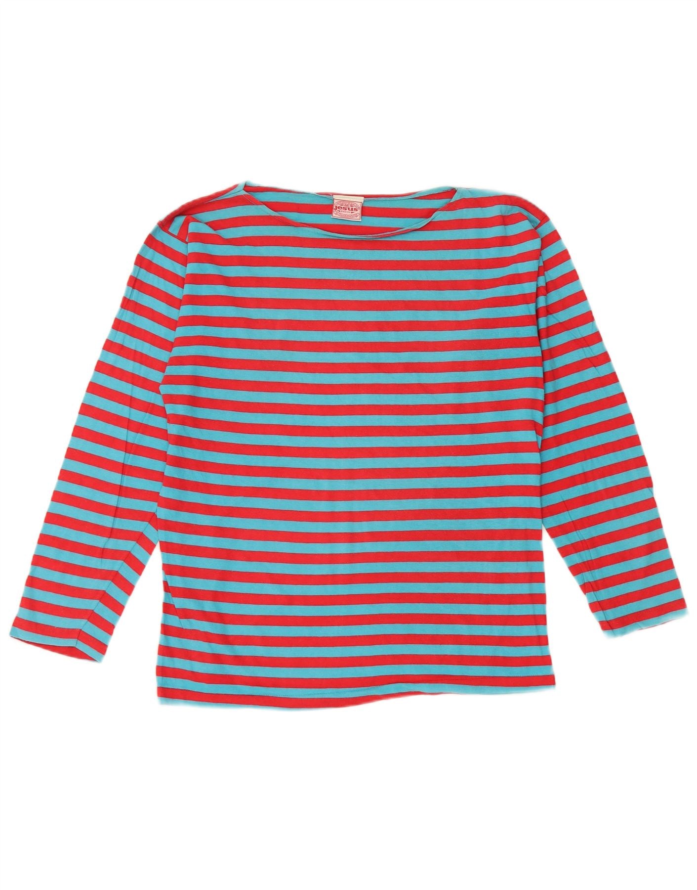 Top feminino JESUS de manga comprida Reino Unido 16 algodão listrado vermelho grande