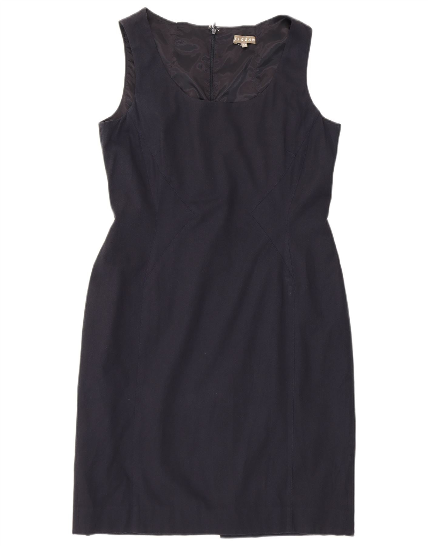 Jigsaw vestido feminino sem mangas com bainha UK 14 médio azul marinho viscose