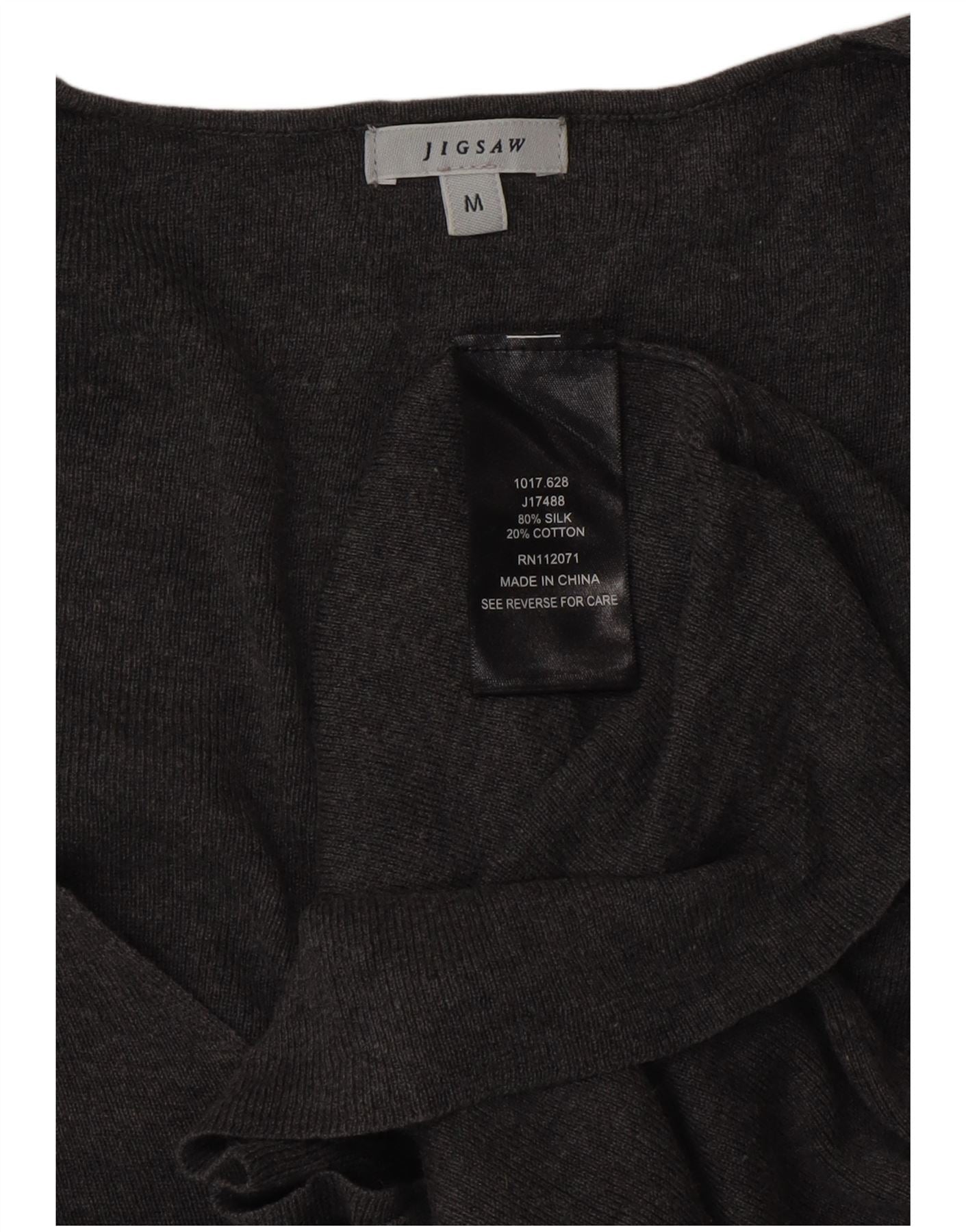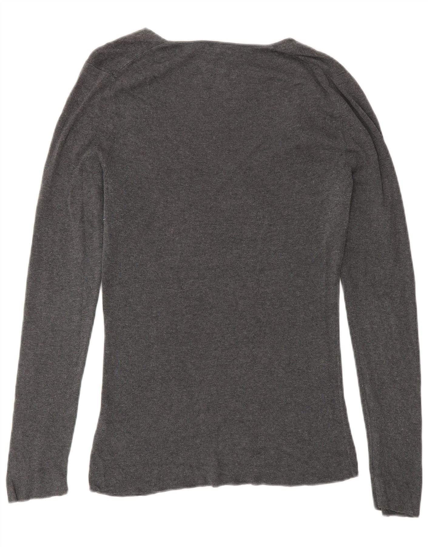 Suéter feminino JIGSAW com decote em V Reino Unido 12 algodão cinza médio