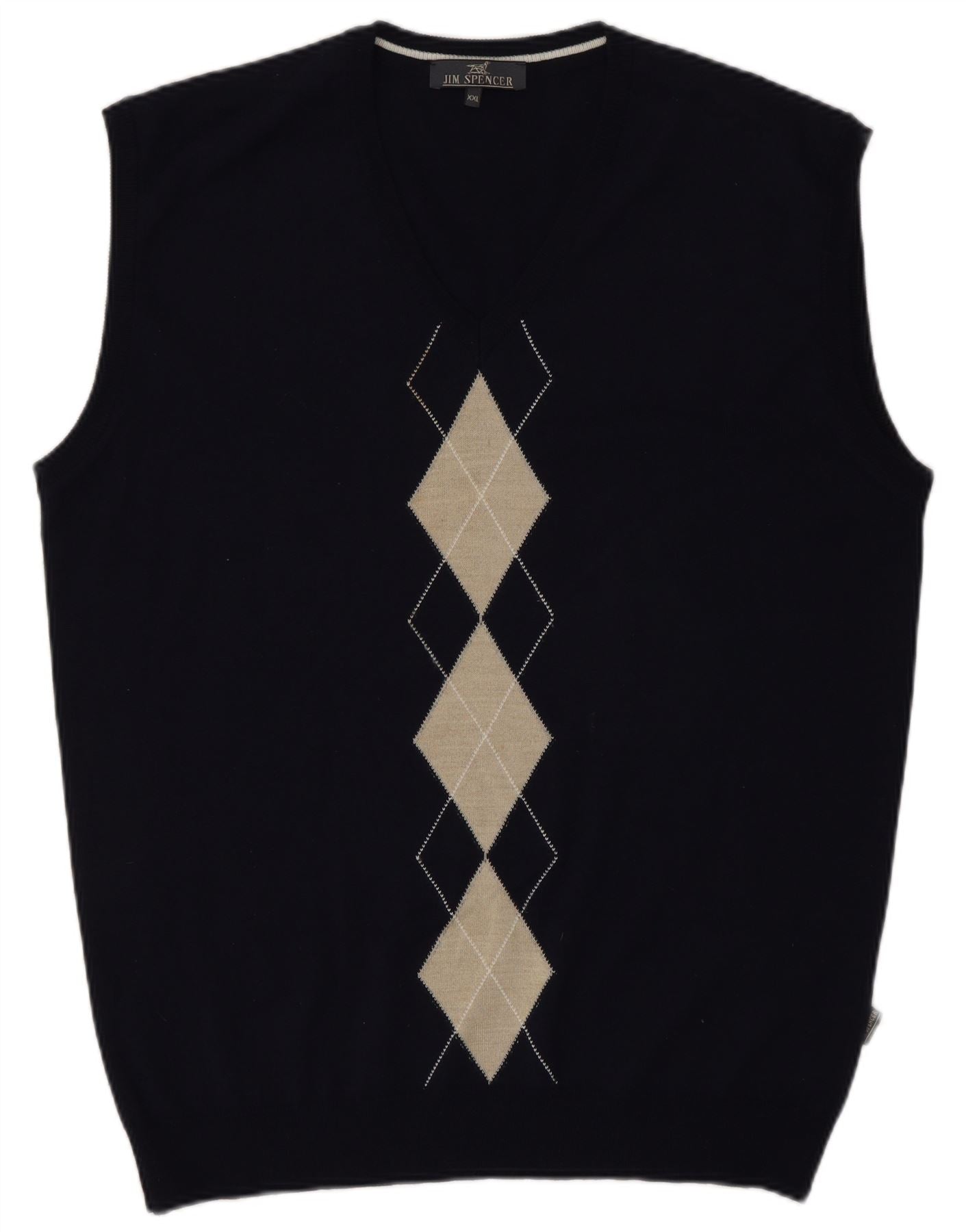 Jim Spencer Colete Masculino Regata 2XL Azul Marinho Argyle/Diamante Nova Lã
