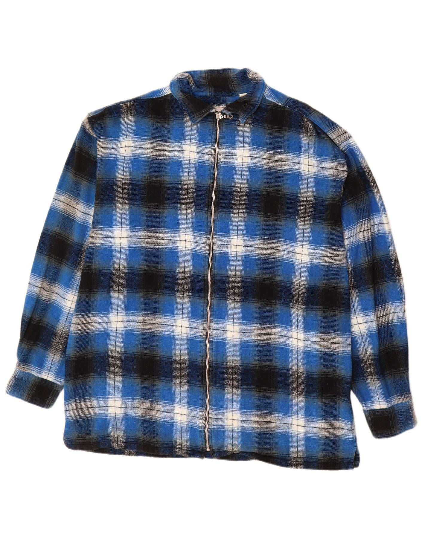 Camisa masculina de flanela John Baner tamanho 15 1/2 algodão xadrez azul médio