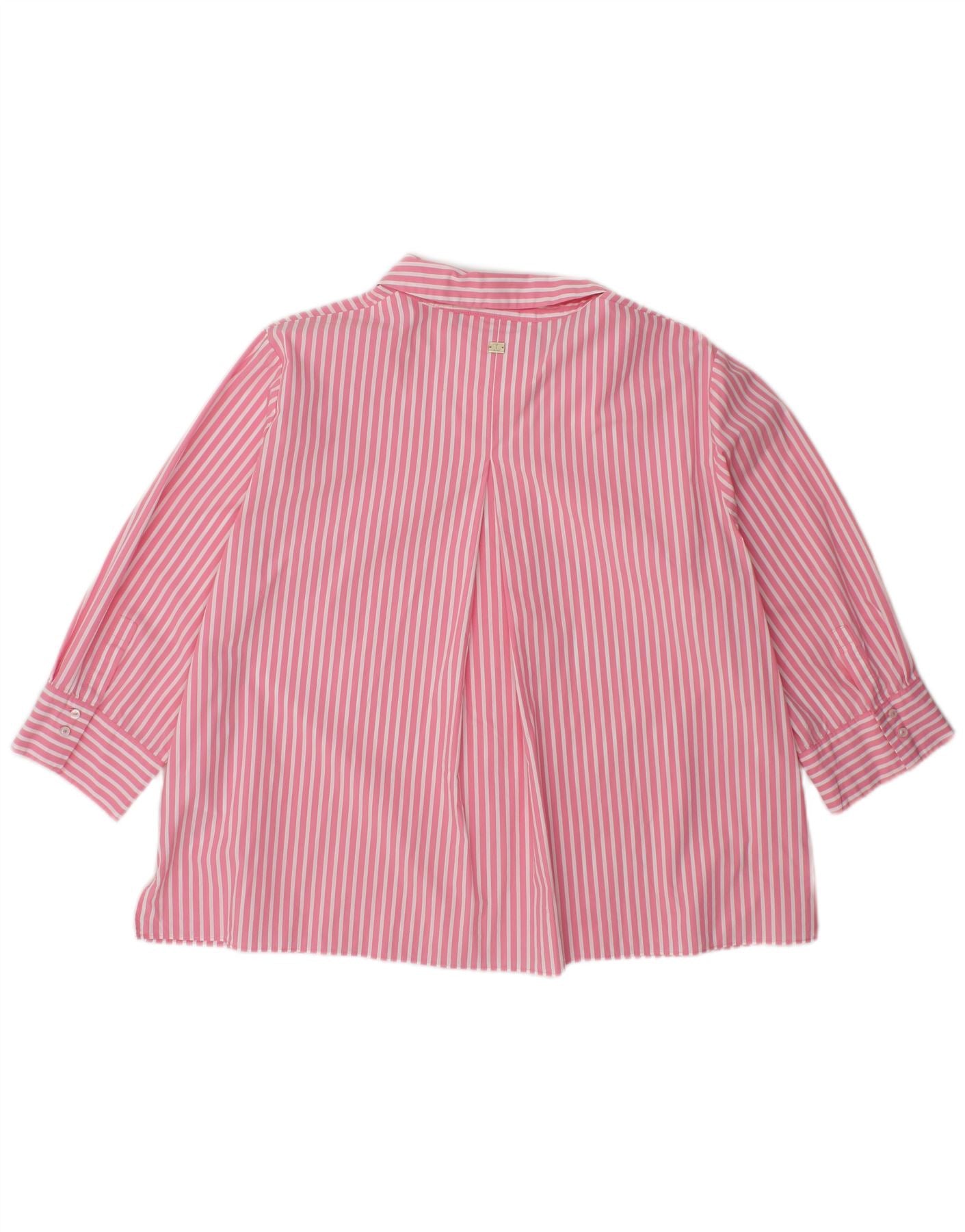 Blusa feminina JOOP manga 3/4 Reino Unido 14 algodão listrado rosa médio