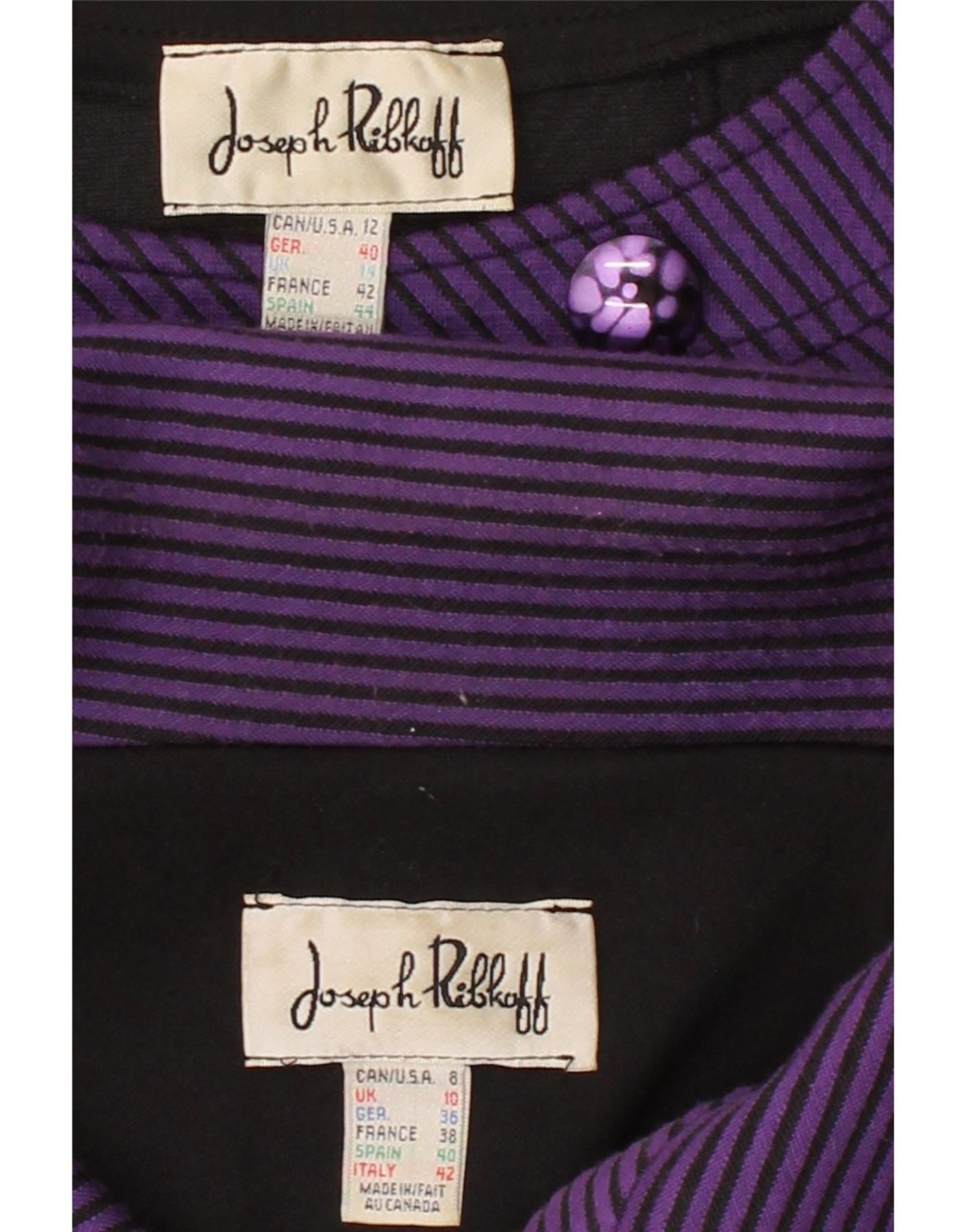 JOSEPH RIBKOFF Conjunto feminino de manga 3/4, 2 peças, Reino Unido 14, risca de giz roxa grande