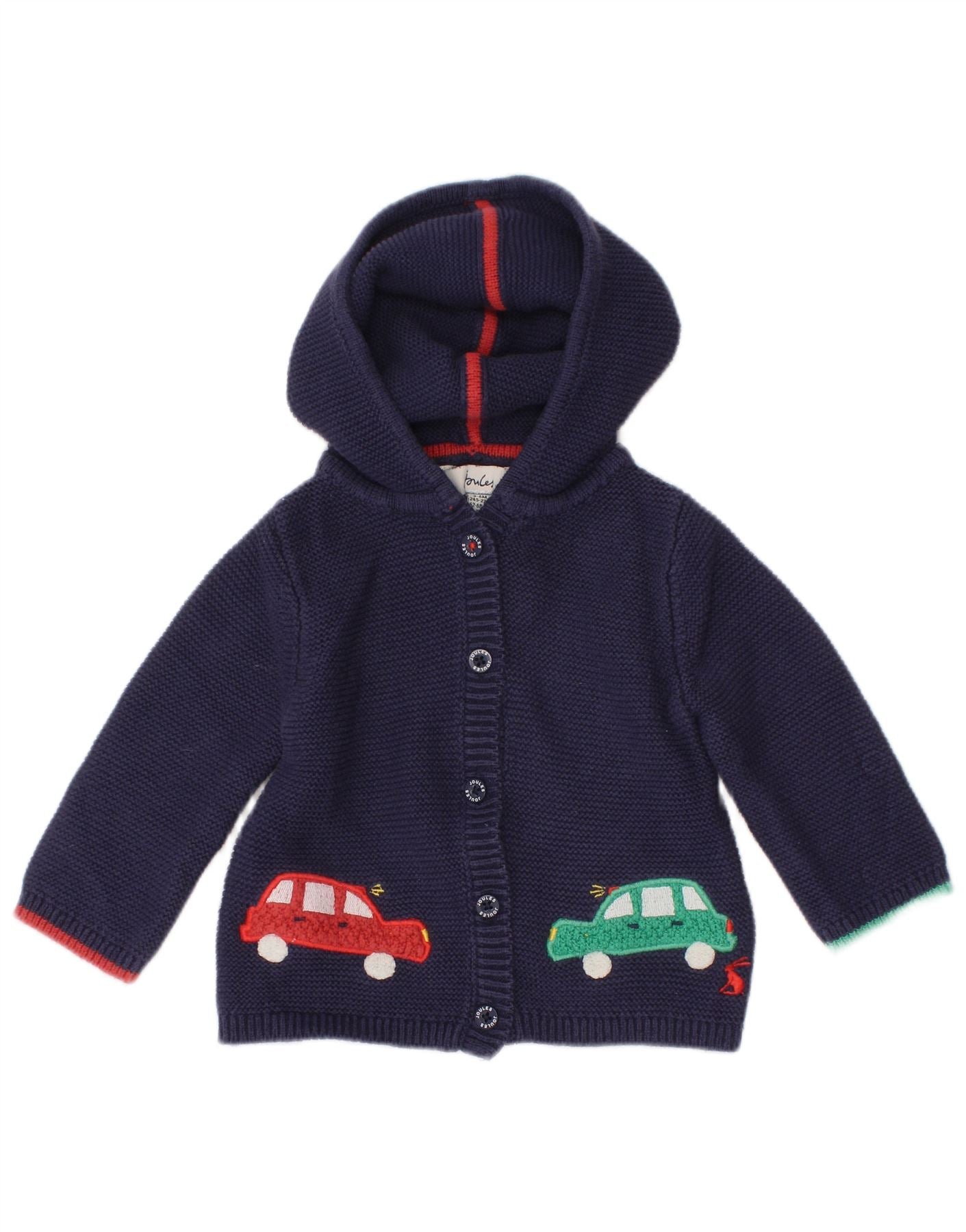 JOULES Suéter cardigã estampado com capuz para bebês meninas de 3 a 6 meses azul marinho