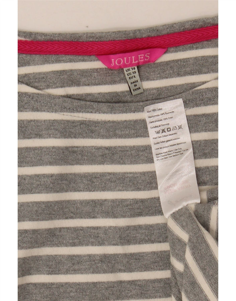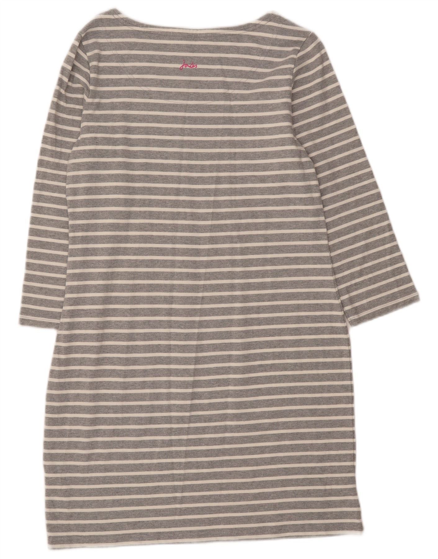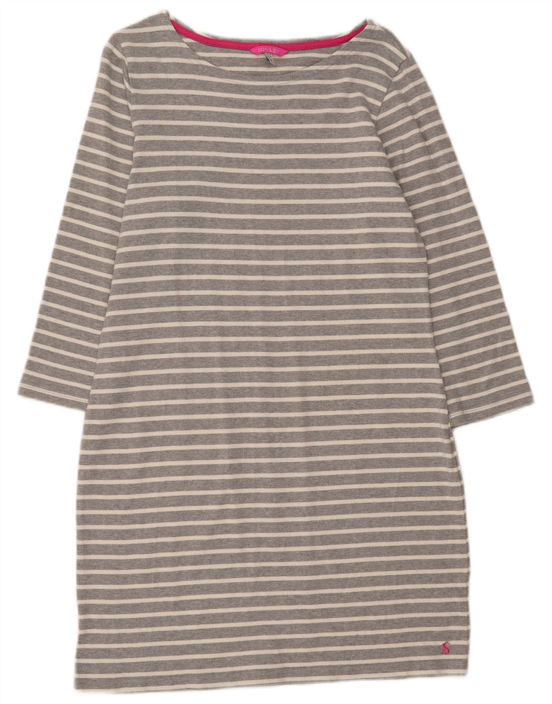 JOULES Womens 3/4 Sleeve Shift Dress UK 14 Medium Grey Striped Cotton