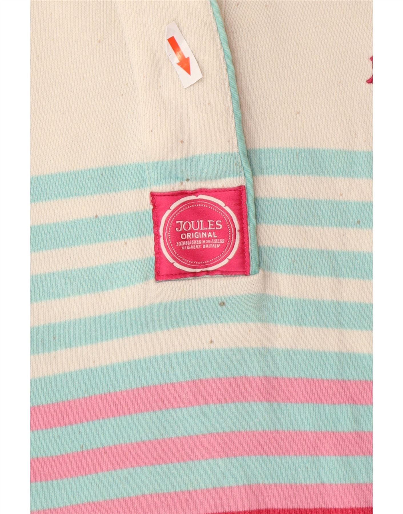 - Descrição da IA: Este suéter feminino Joules é confeccionado em tecido macio de malha 100% algodão. Possui um padrão listrado vibrante em branco, turquesa e rosa. A gola simulada e o fecho de botão oferecem um ajuste clássico e confortável. Mangas longas completam o design. Um detalhe sutil do logotipo adiciona um toque exclusivo. O ajuste regular garante facilidade de uso e conforto.