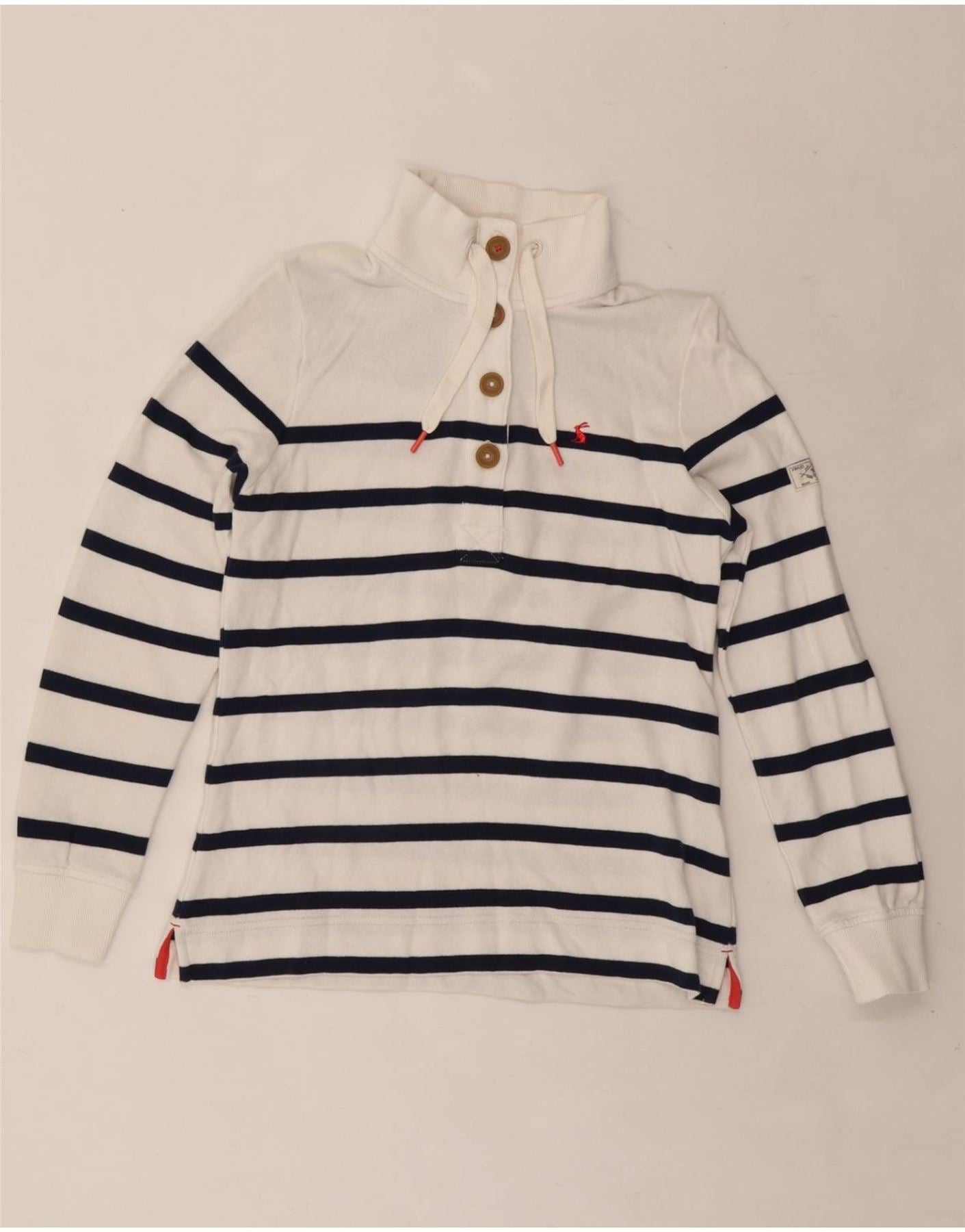 JOULES Womens Button Neck Sweatshirt Jumper UK 8 Small White Striped