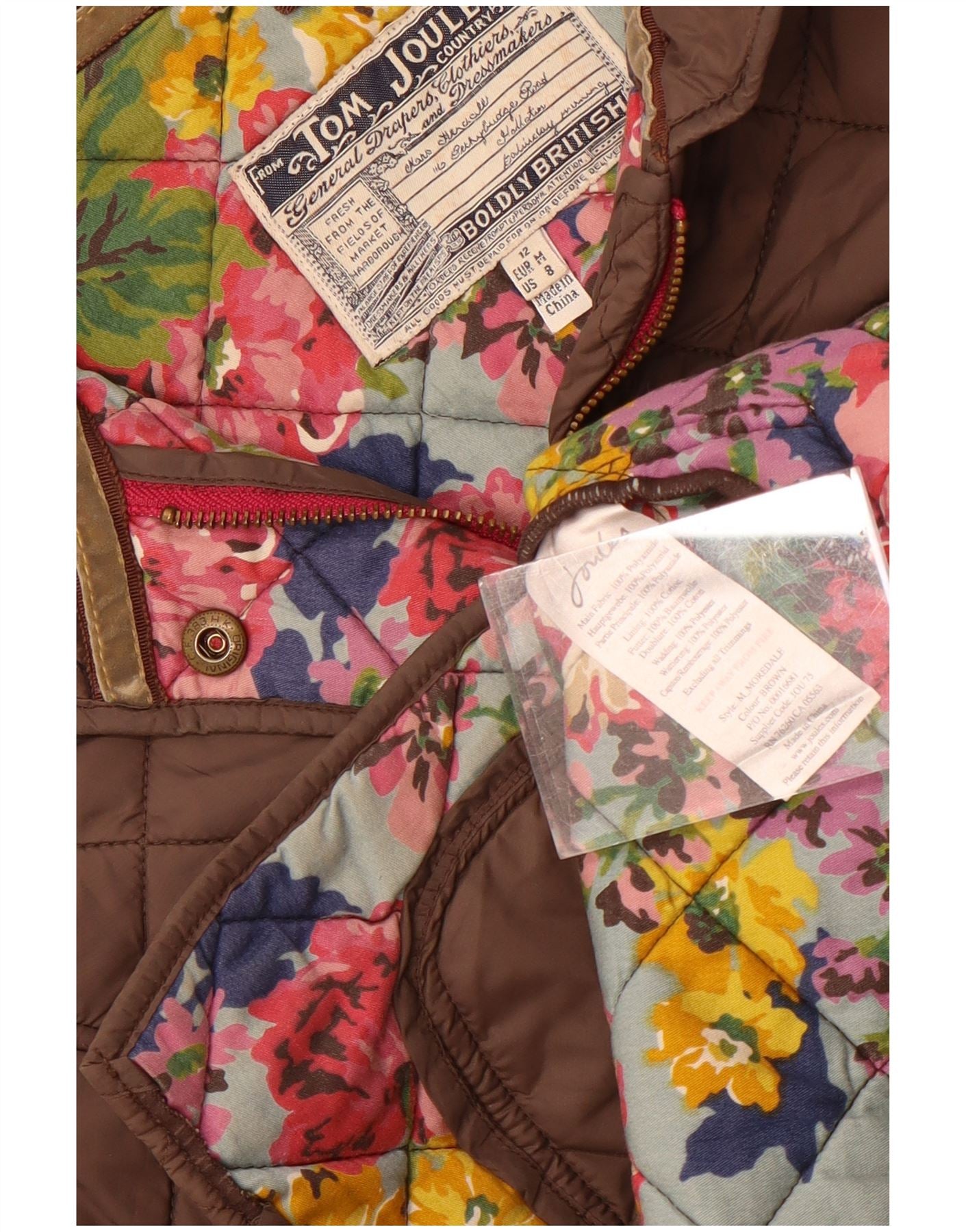 - Descrição da IA: Esta jaqueta acolchoada feminina Joules vem em um rico tecido marrom com acabamento acolchoado clássico. Possui decote com gola e fechamento completo por botões. Mangas compridas proporcionam ampla cobertura. O ajuste regular garante um uso confortável. Bolsos de veludo cotelê adicionam contraste tátil e detalhes práticos. A jaqueta é totalmente forrada para maior calor e conforto.