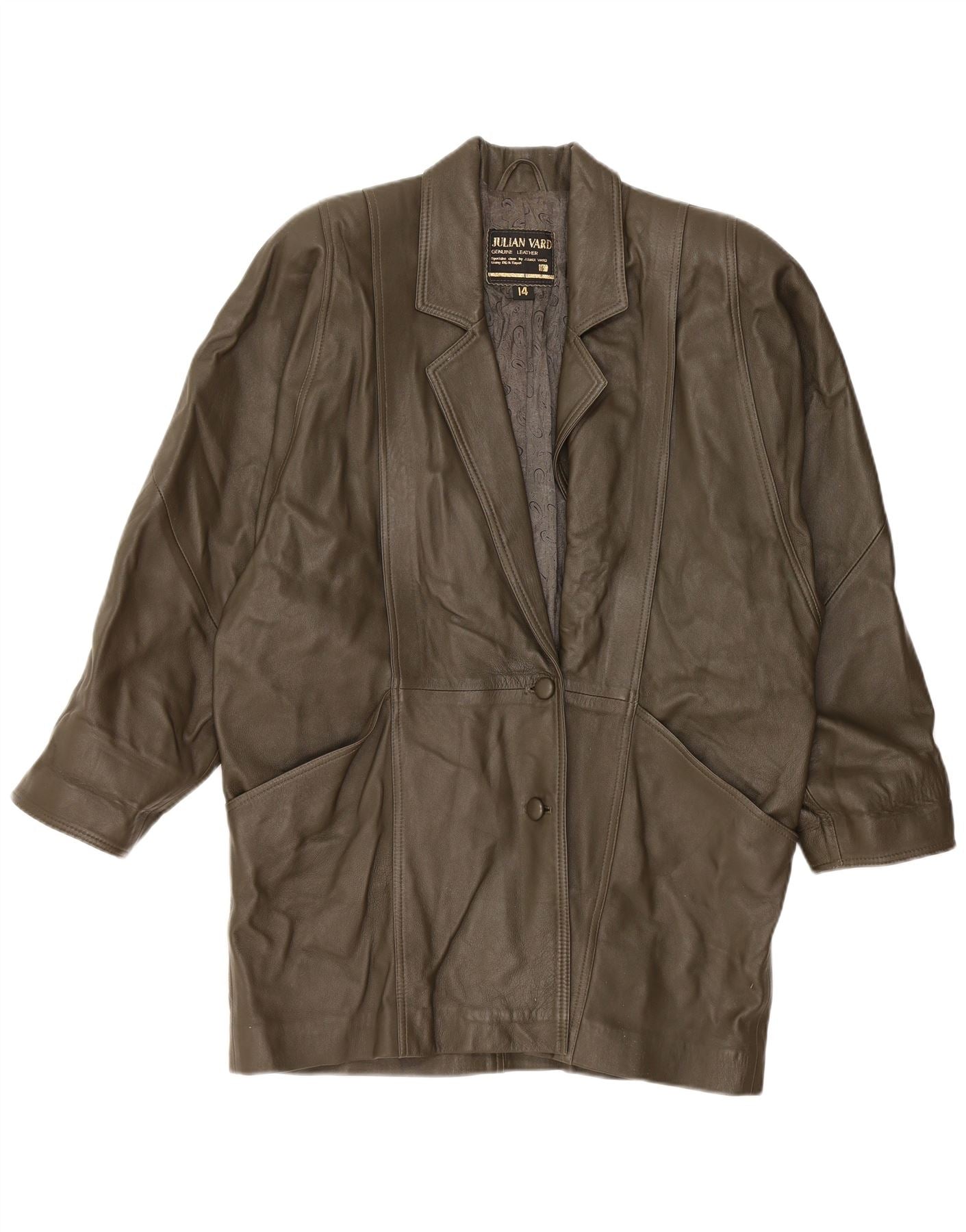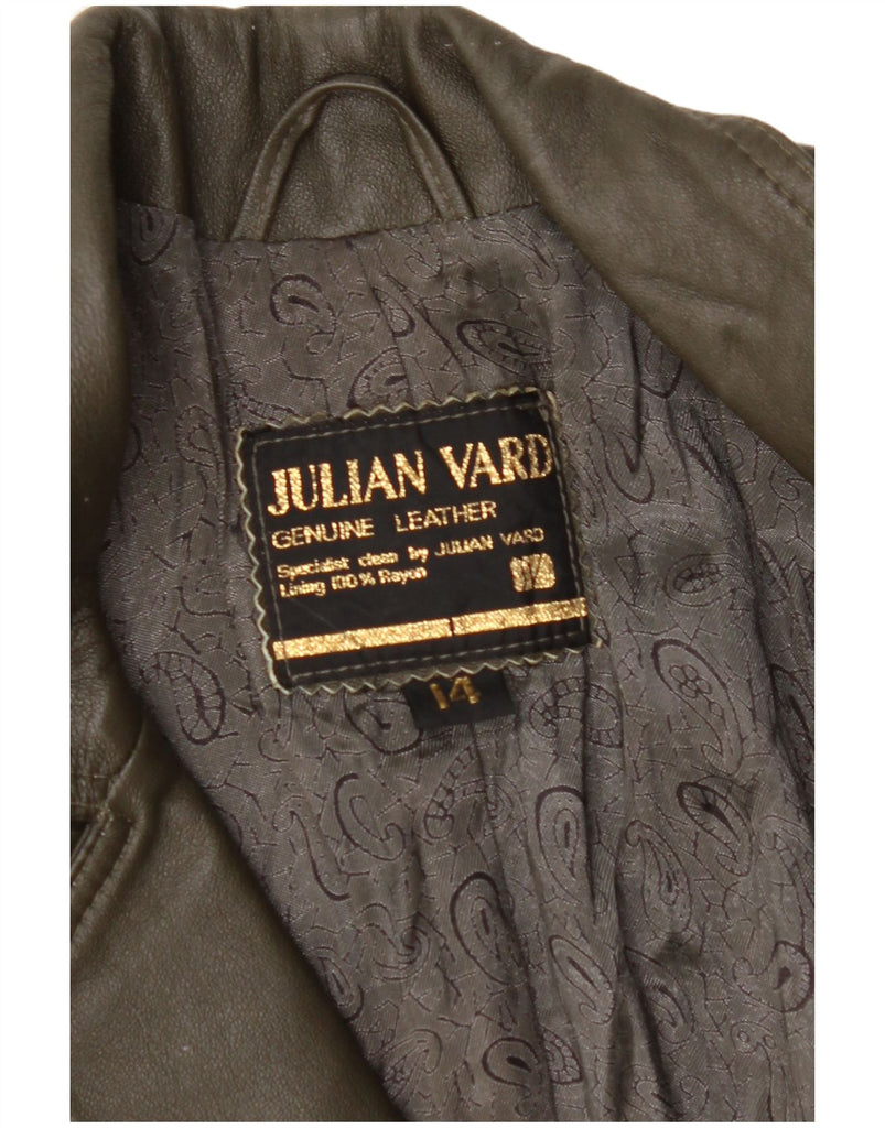 Casaco de couro feminino JULIAN VARD Reino Unido 14 grande couro verde