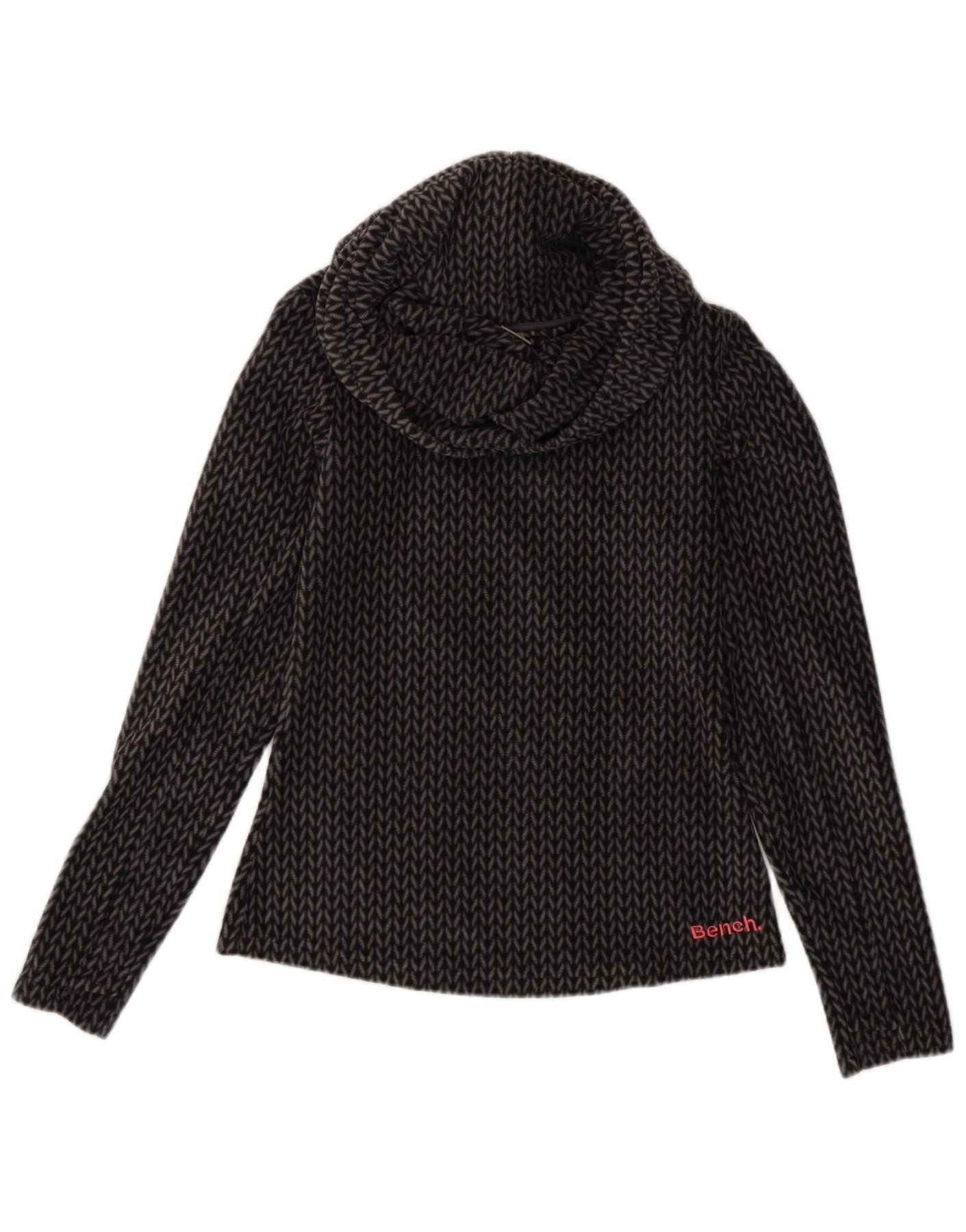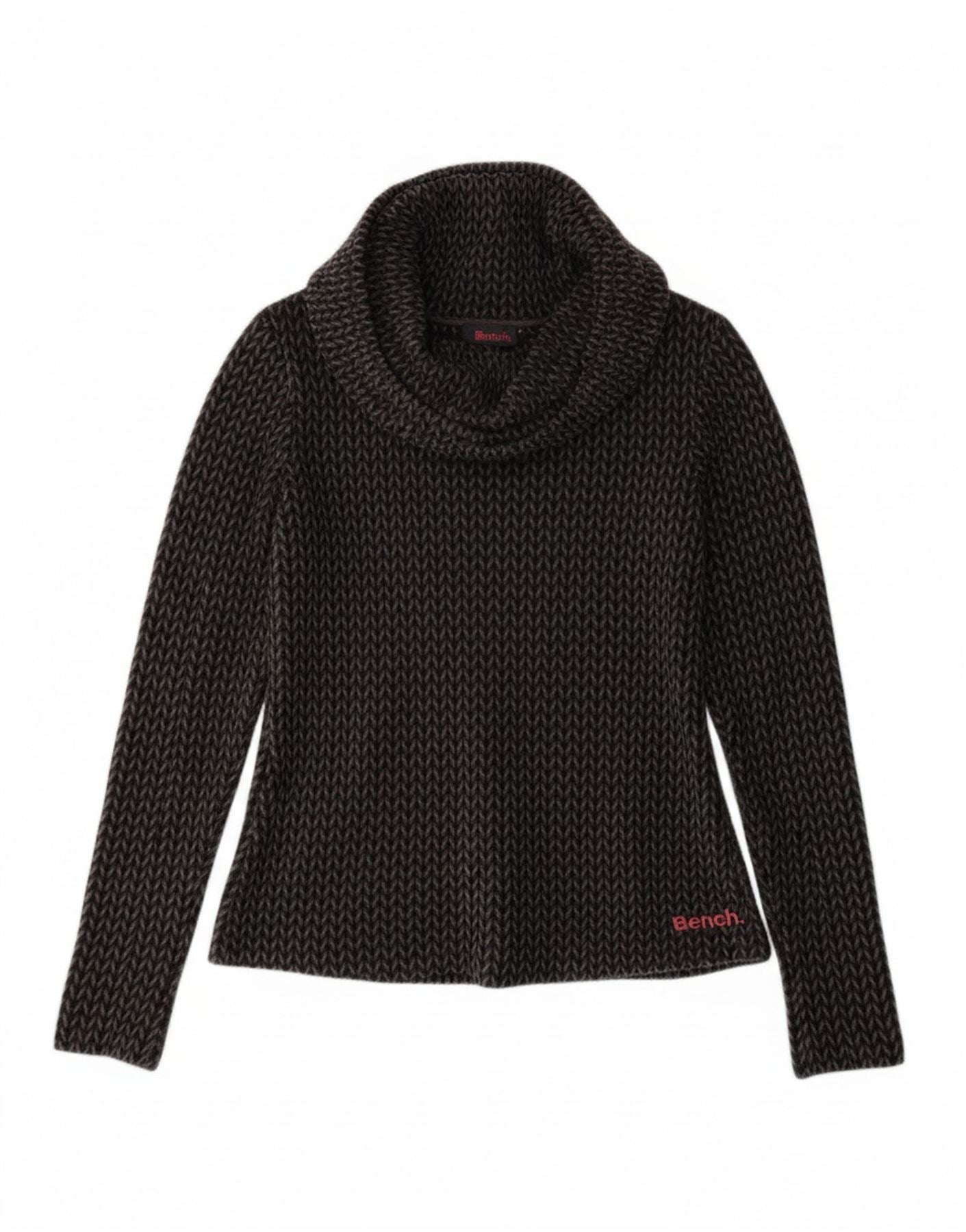 Jumper de lã feminino com gola redonda BENCH UK 10 pequeno poliéster Chevron cinza