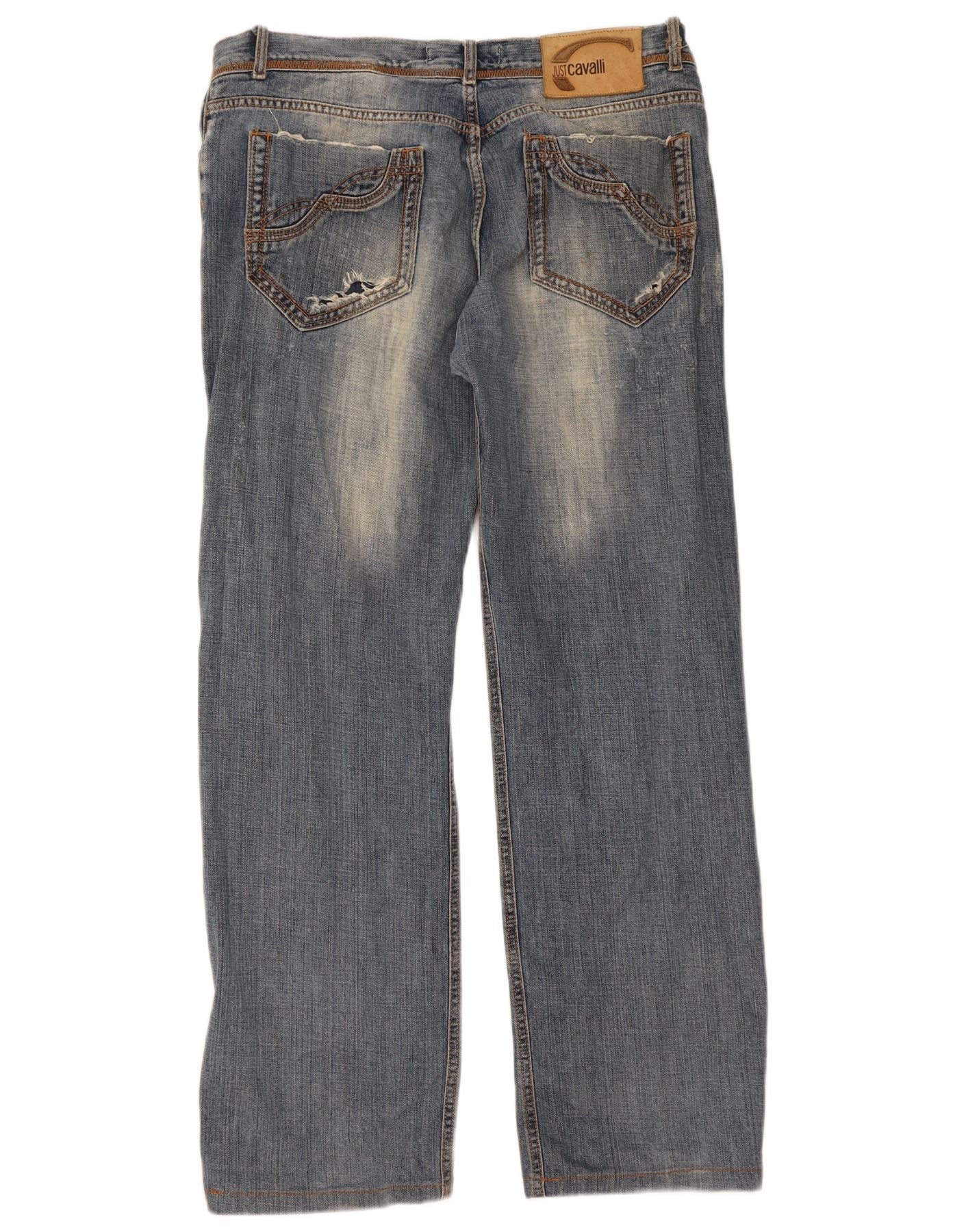 JUST CAVALLI Calça jeans masculina de perna larga W38 L31 algodão azul