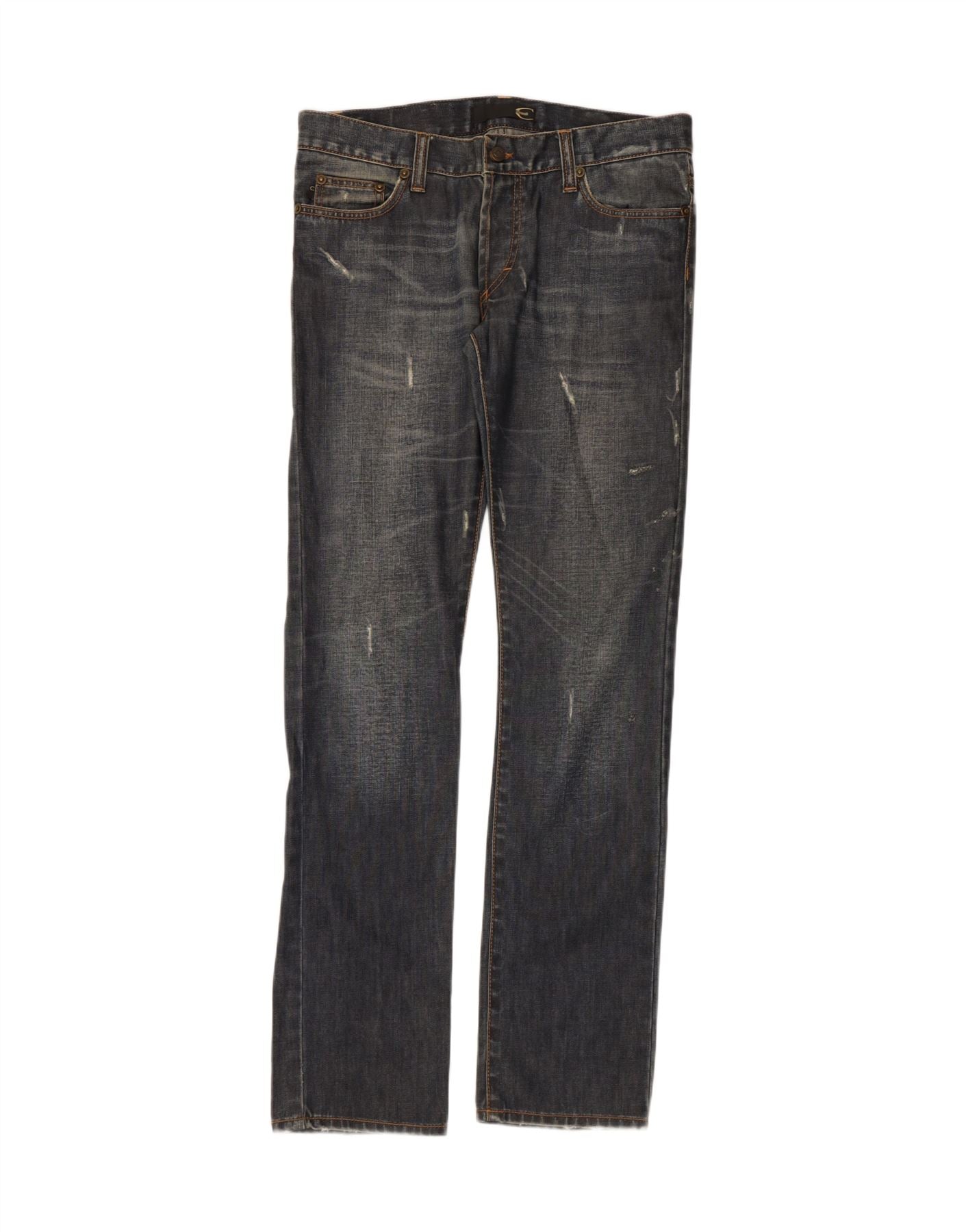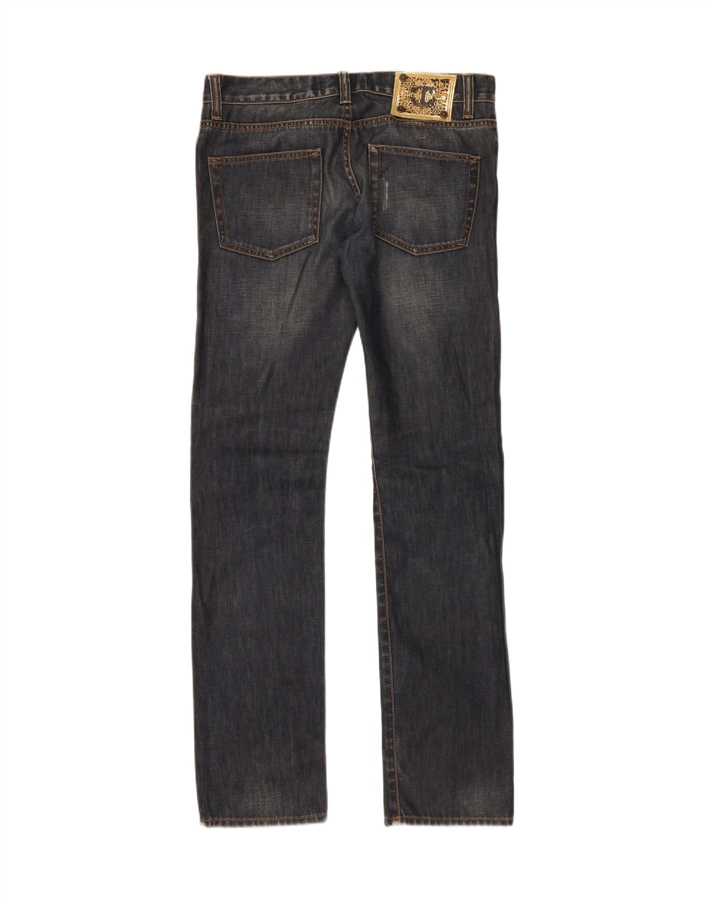 - Descrição da IA: Estes jeans retos masculinos Just Cavalli são confeccionados em jeans azul desgastado para uma sensação autêntica e vivida. O corte reto oferece um ajuste confortável e regular em toda a perna. Um clássico fecho de botão protege a cintura, complementado por bolsos funcionais. Os detalhes desgastados adicionam um toque robusto e contemporâneo ao design. Esse estilo traz uma estética grunge, perfeita para uso casual.