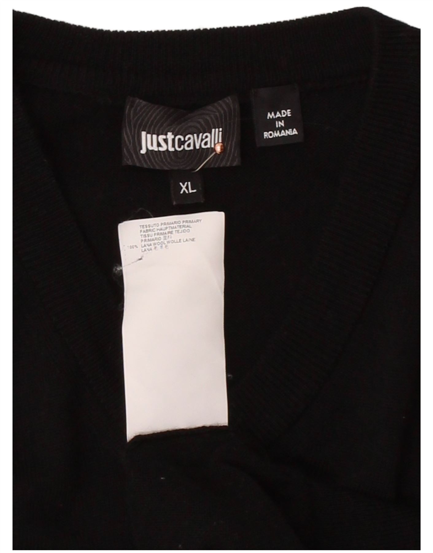 JUST CAVALLI Camiseta regata feminina com palangre Reino Unido 18 XL lã preta