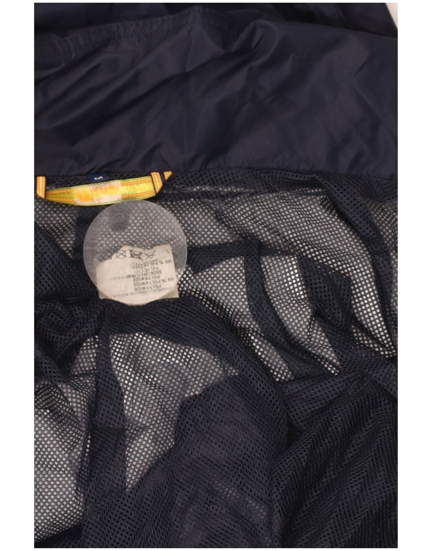- AI Description: This K-Way mens Windbreaker Jacket is crafted from 100 percent polyamide, offering a lightweight woven texture. It features a collared neckline and long sleeves. The regular fit ensures comfortable wear. A full zip closure and hooded design provide practicality. This navy blue jacket is packable and water resistant, with a subtle logo accent.