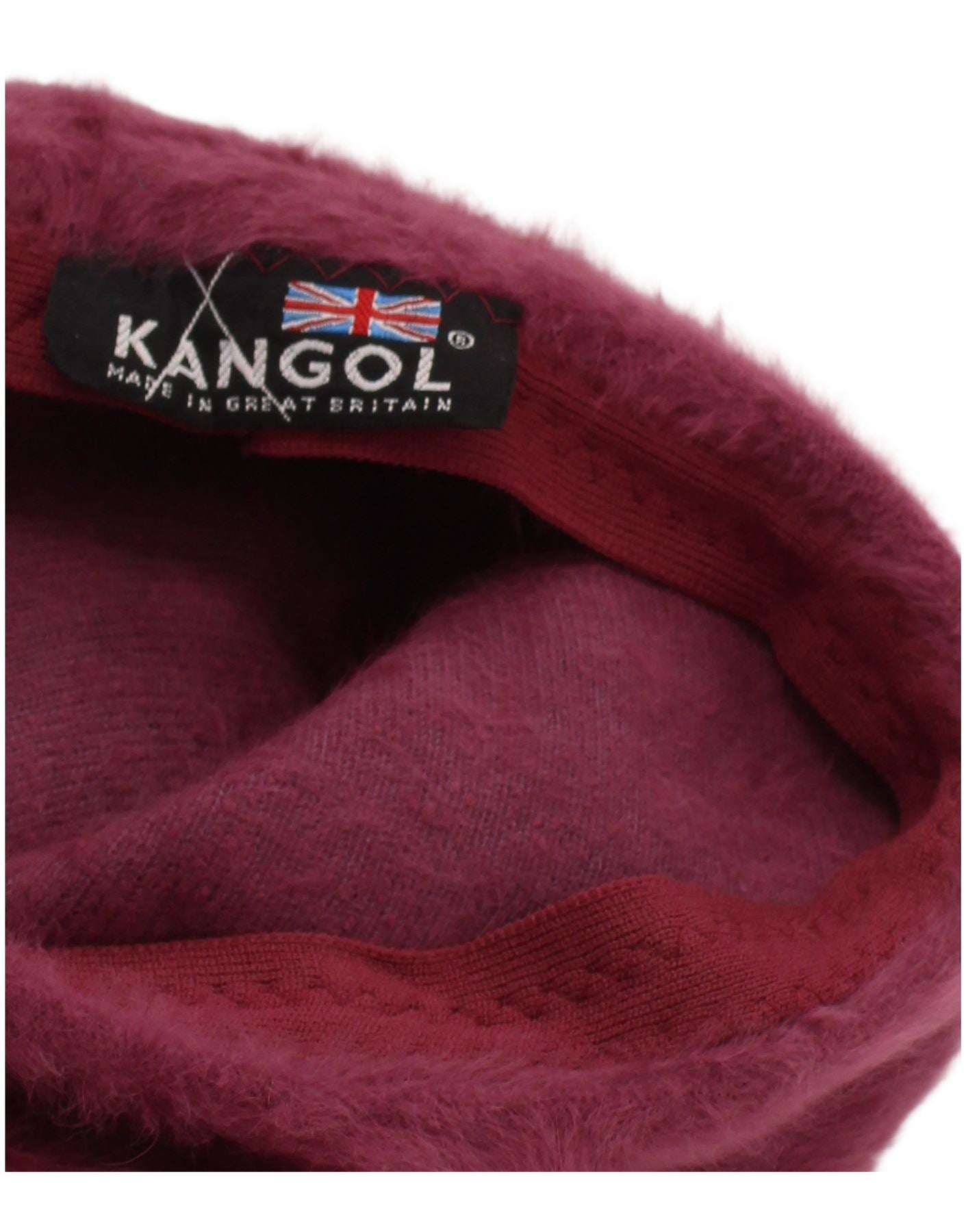 - AI Description: This Kangol womens Beret Hat is presented in a rich burgundy knit fabric. Its classic slip on design offers a comfortable, timeless fit. The soft knit texture ensures warmth and style. A subtle faux fur detail adds a touch of luxury. This piece embodies classic elegance and British style.