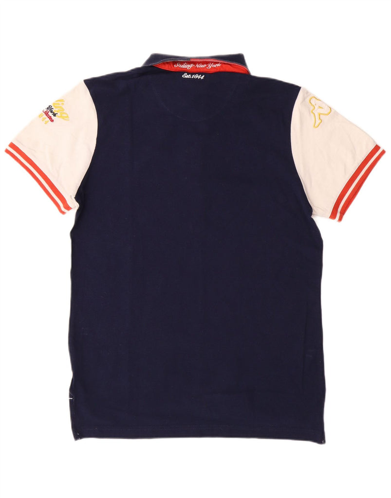 Camisa polo masculina KAPPA gráfica média azul marinho algodão colorblock