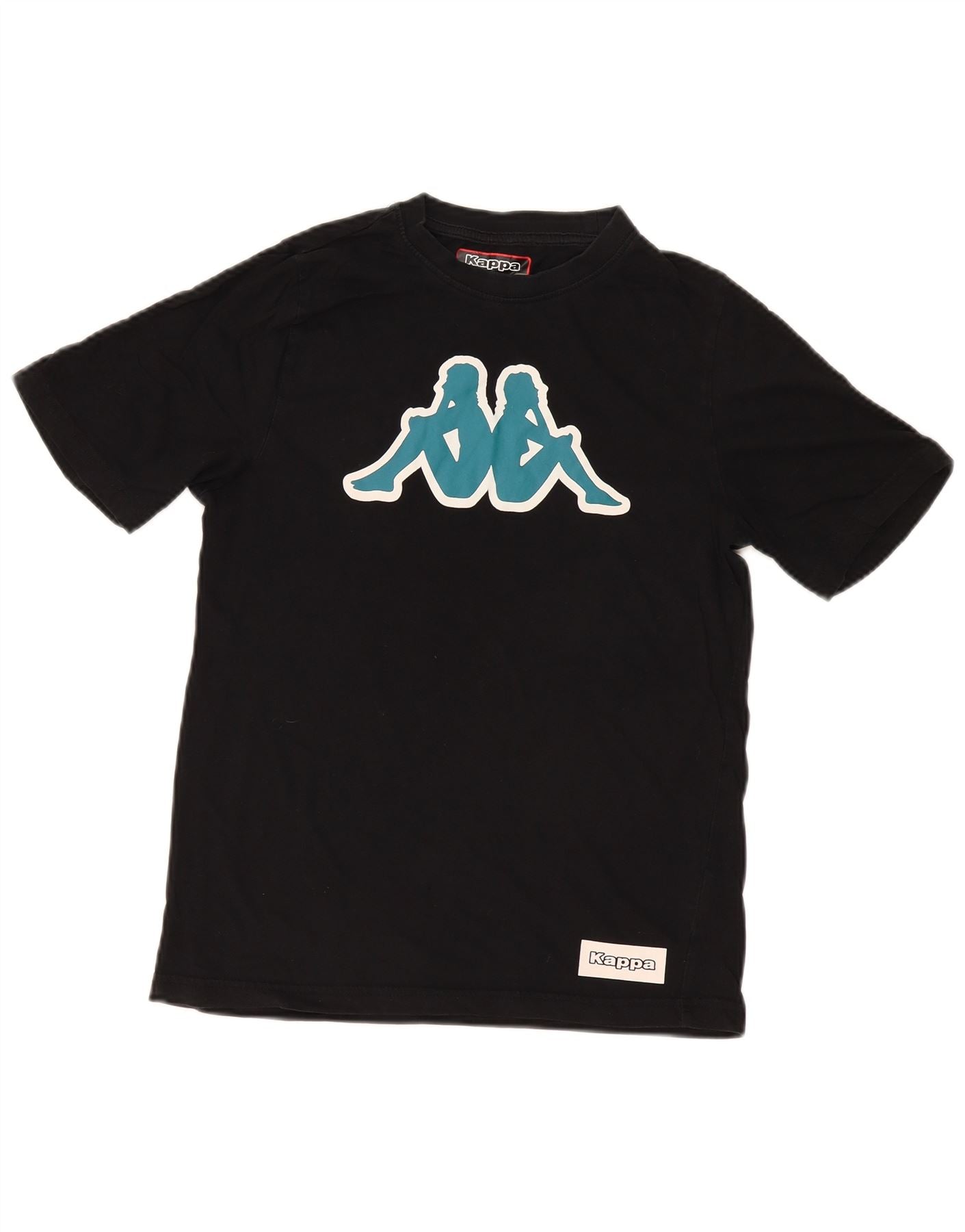 - Descrição da IA: Esta camiseta gráfica Kappa para meninos é confeccionada em jersey preto macio 100% algodão. Possui gola redonda clássica e mangas curtas confortáveis. Um proeminente logotipo Kappa Omini azul-petróleo adorna o peito. O ajuste regular garante facilidade de movimento. Este estilo pulôver oferece conforto e respirabilidade para uso diário.