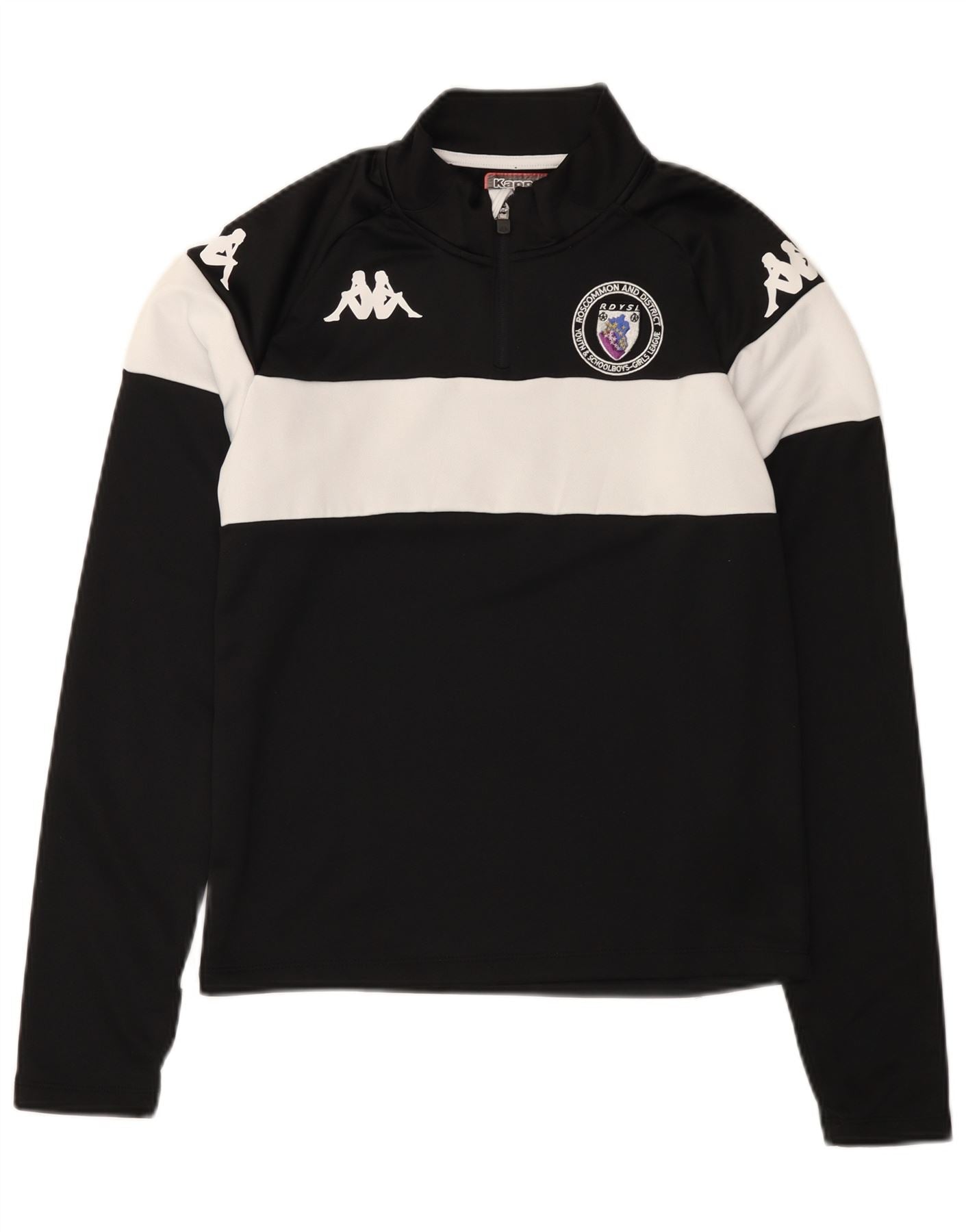 KAPPA Mens Graphic Zip Neck Pulôver Treino Top Pequeno Bloco Colorido Preto