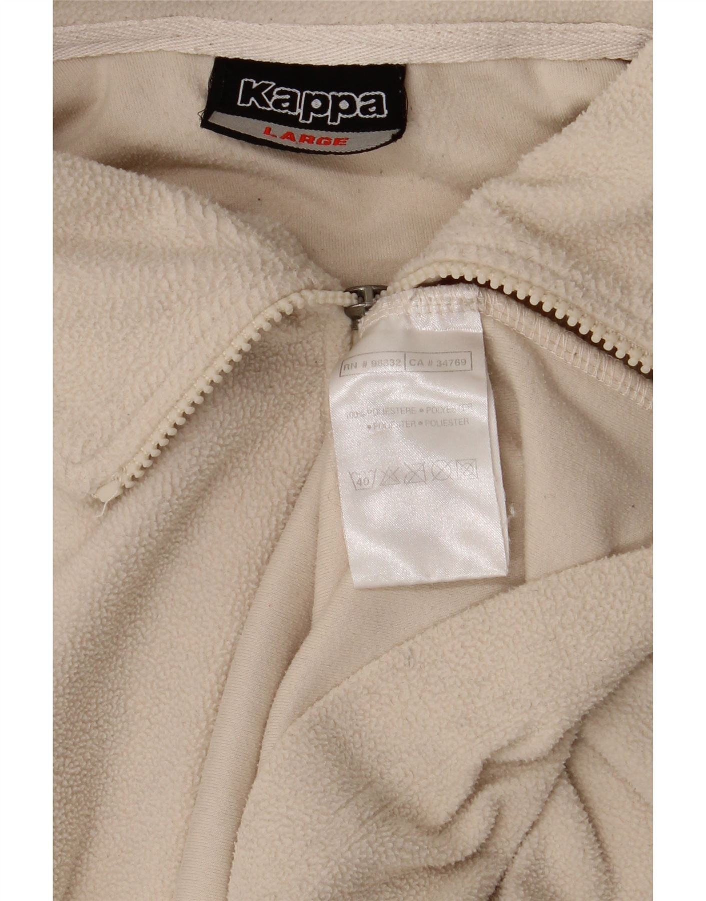 KAPPA Masculino Zip Neck Fleece Jumper Grande Poliéster Branco