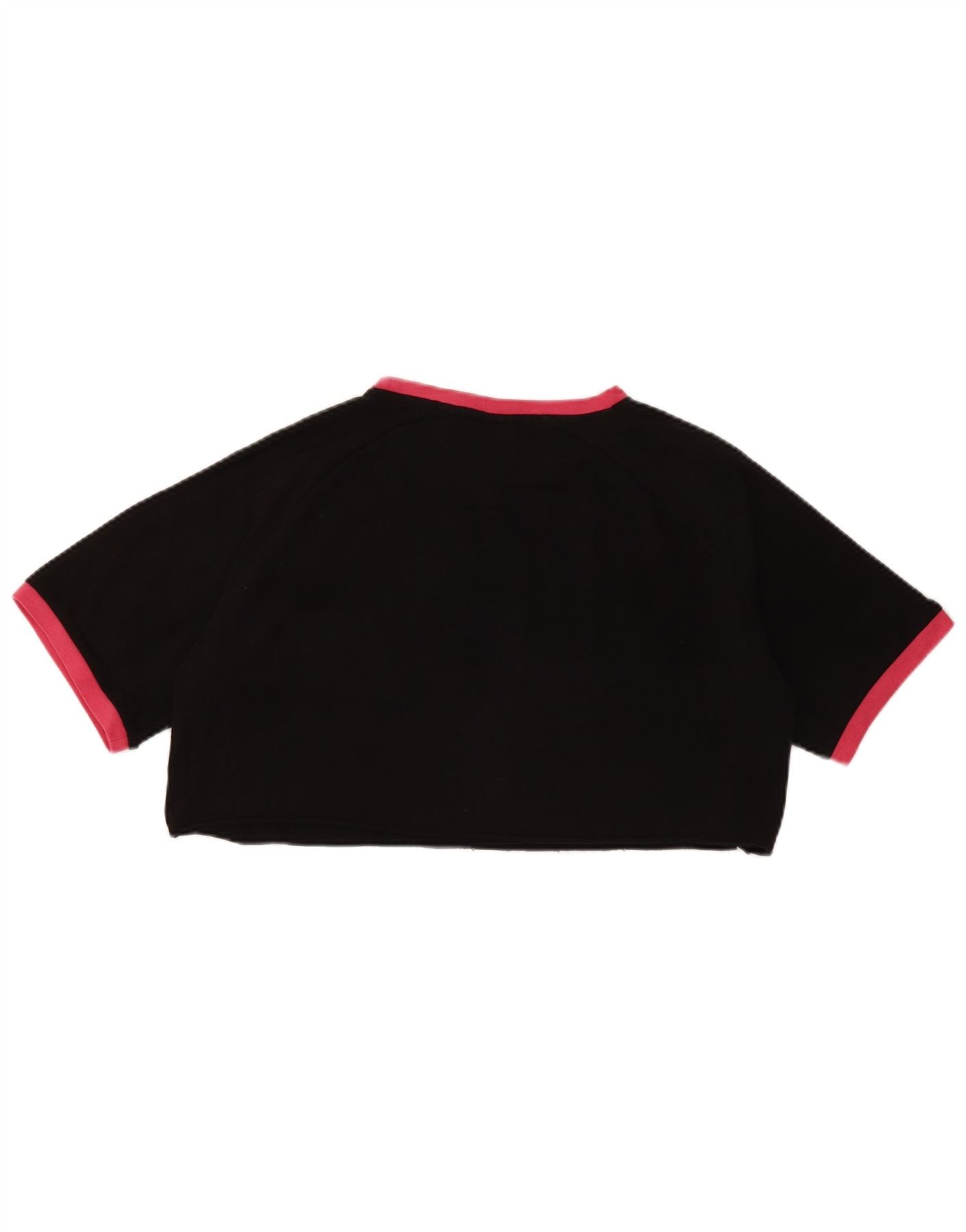 KAPPA Camiseta Feminina Crop Oversized Gráfico Reino Unido 10 Pequeno Algodão Preto