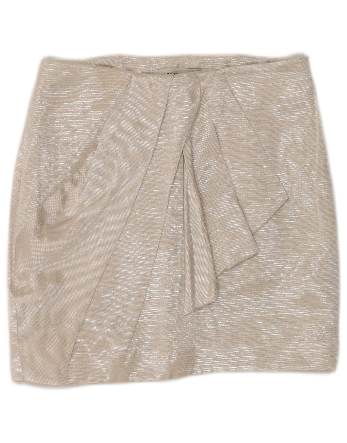 Mini saia feminina KAREN MILLEN Reino Unido 8 pequena W26 bege viscose